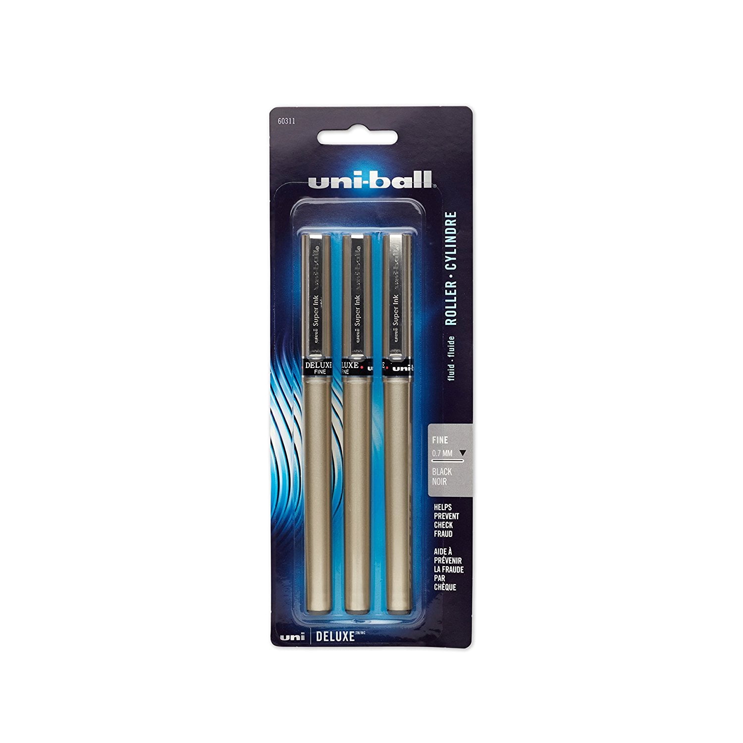 uni-ball Deluxe Rollerball Pens, Fine Point (0.7mm), Black, 3 Count