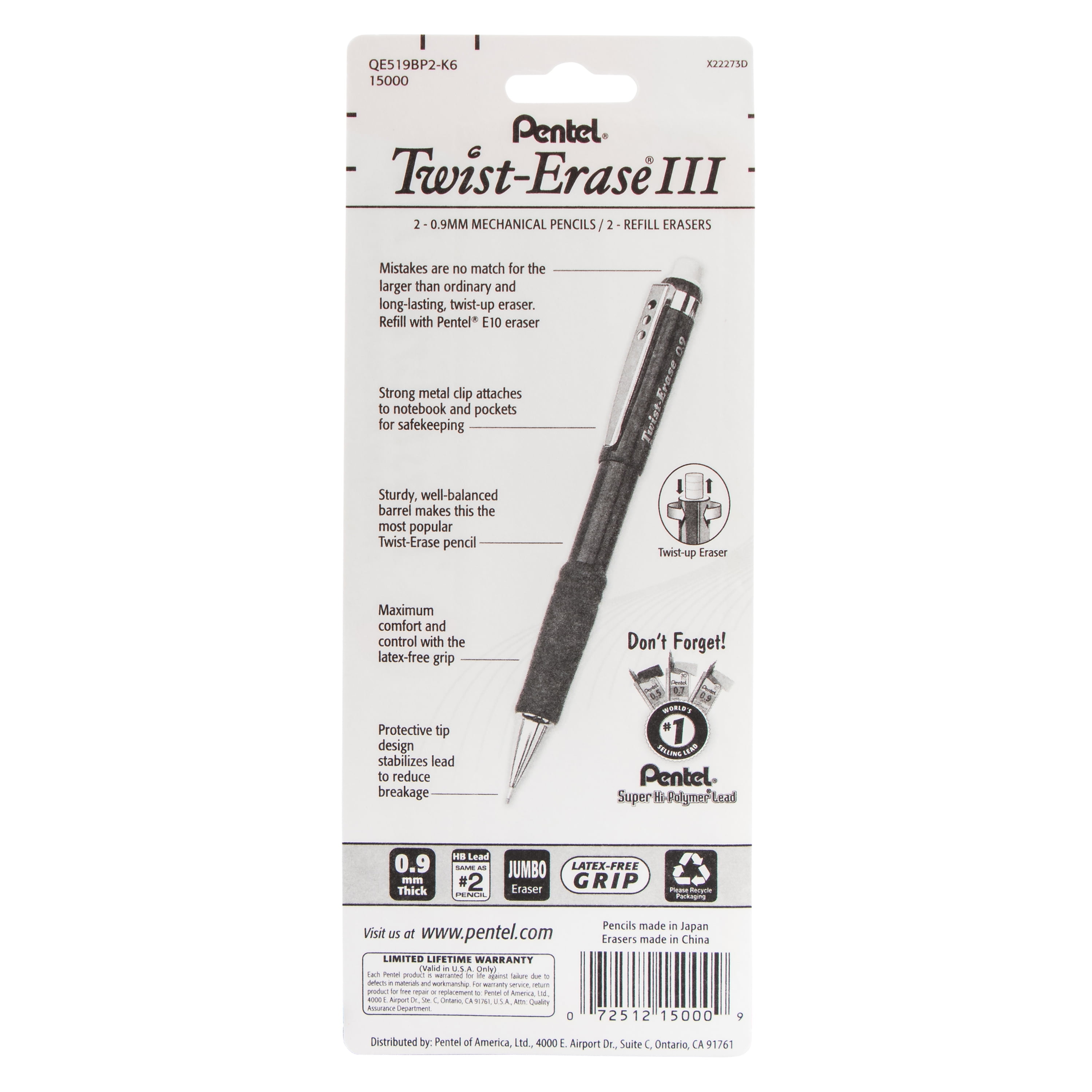 Pentel Twist-Erase III Mechanical pencl, (0.9 mm) with (2) Eraser Refills 2-Pack