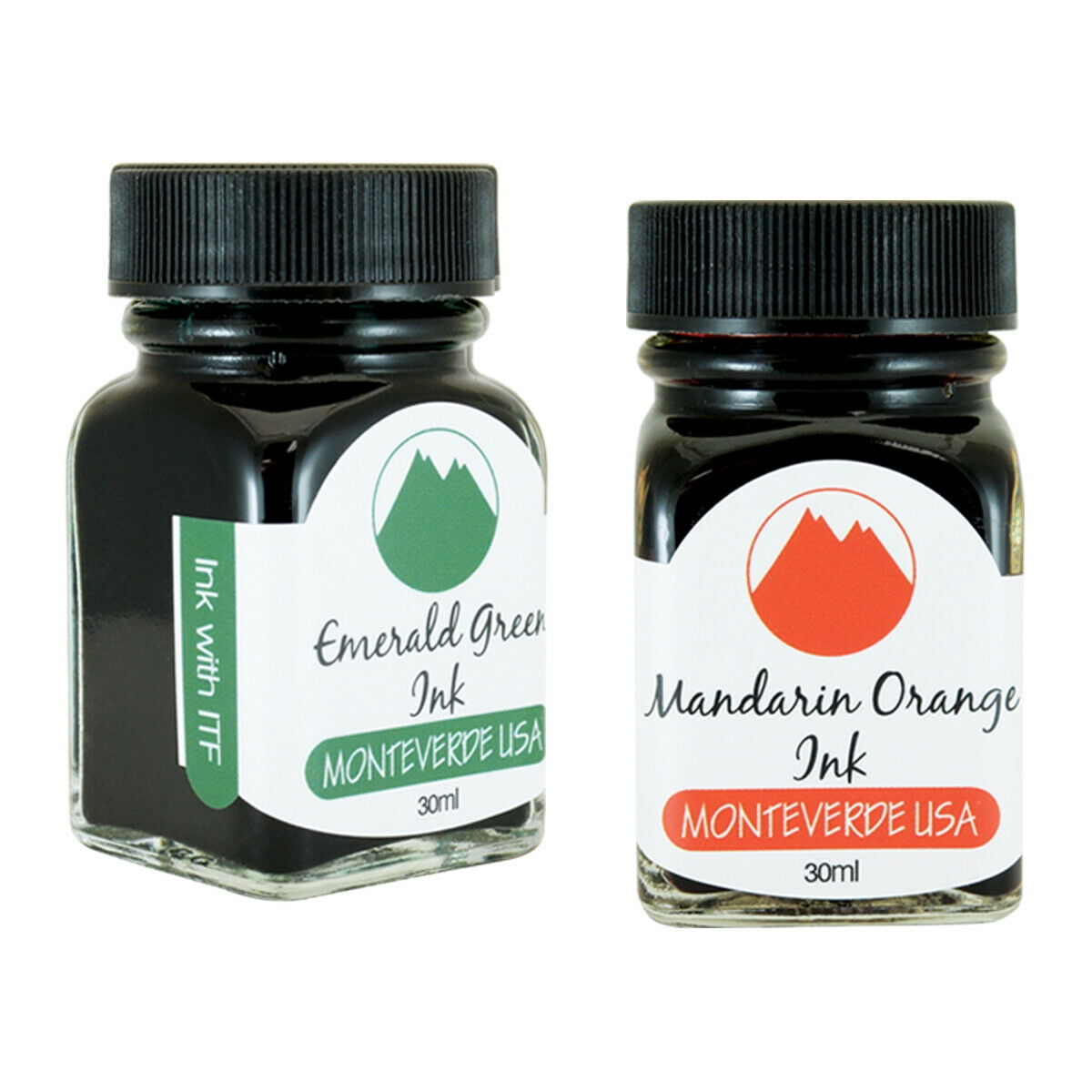 Monteverde 60ml Core Fountain Pen Ink Bottle (30ml Emerald Green Ink Bottle G309EG, 30ml Mandarin Orange Ink Bottle G309MO)
