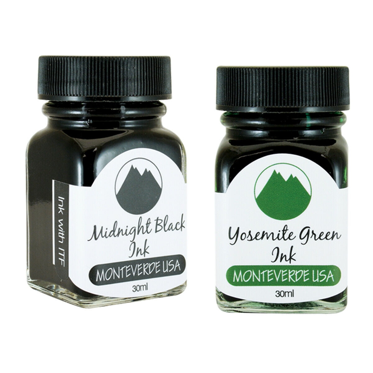 Monteverde 60ml Core Fountain Pen Ink Bottle (30ml Midnight Black Ink Bottle G309MB, 30ml Yosemite Green Ink Bottle G309YG)