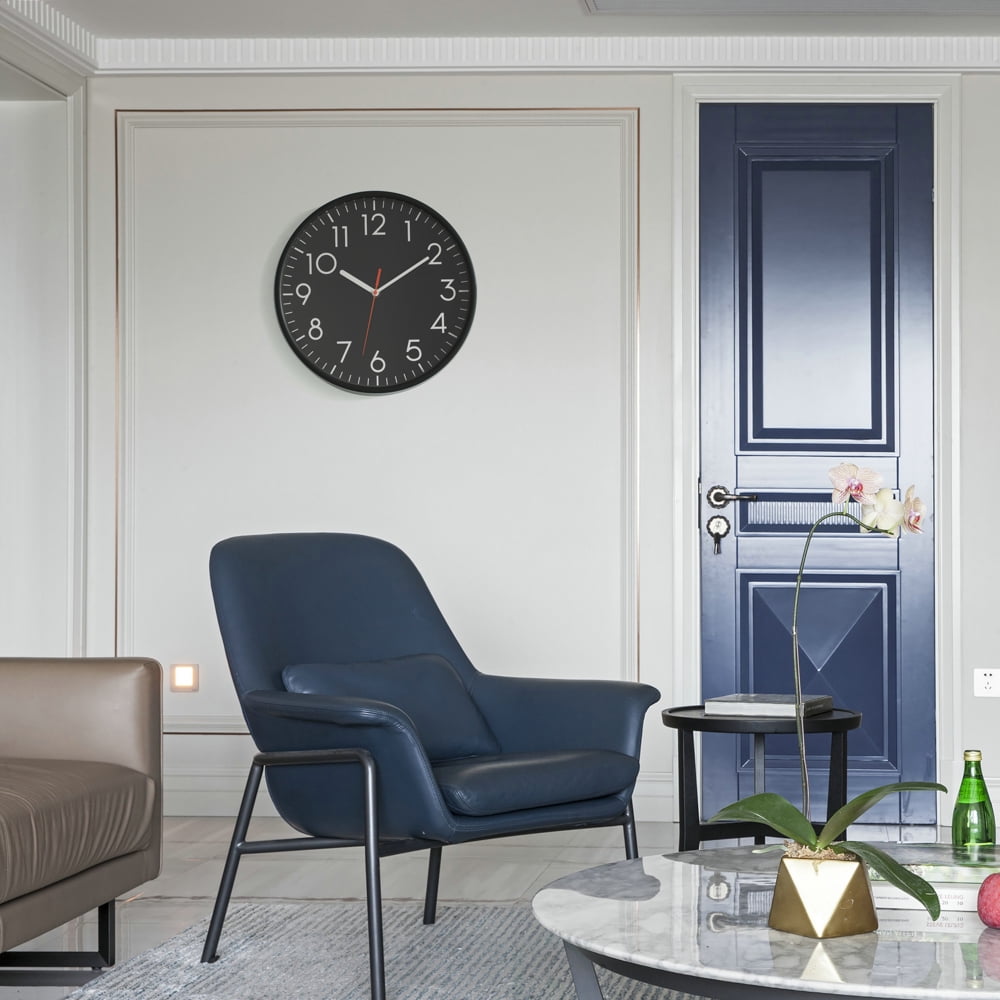 Classic Plastic Home Decor Wall Clock For Living Room, Kitchen, or Dining Room, Black Face with White Numbers