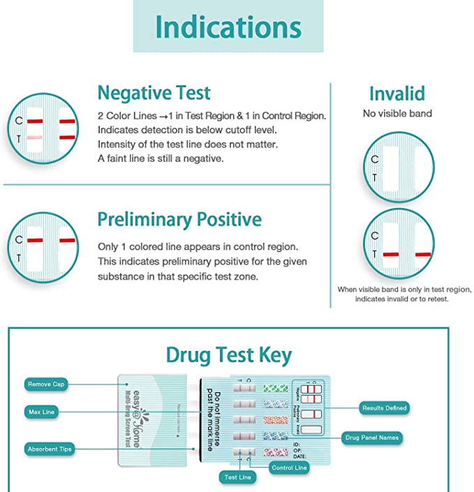 - Easy to use, just urinate into cup and read results, 2 bold lines appear if clean, 1 bold line appears if not clean
