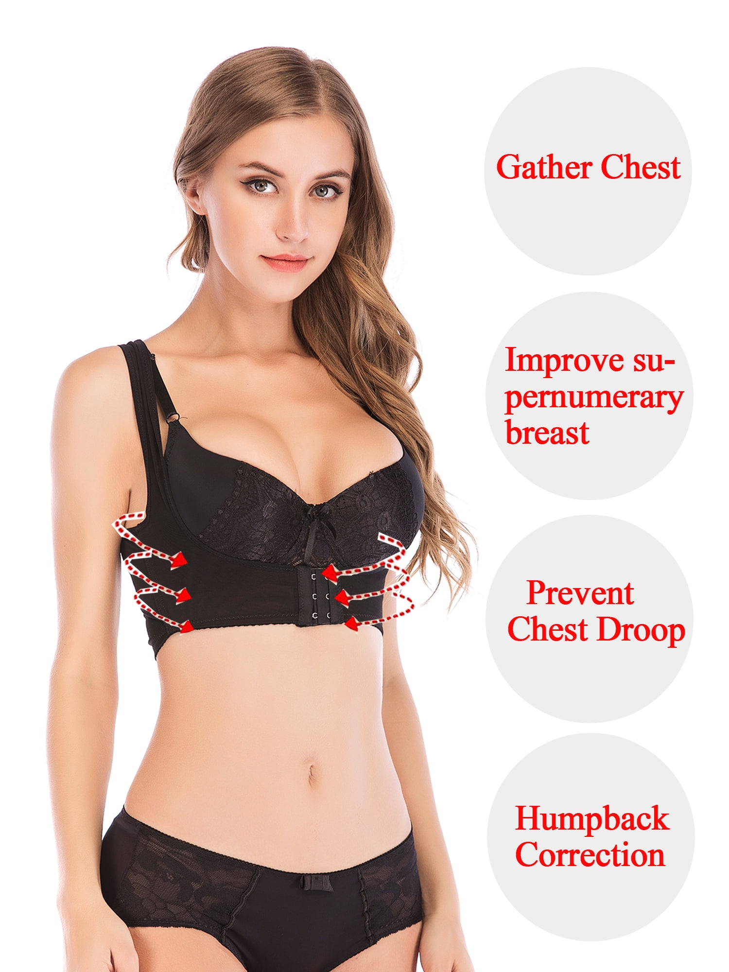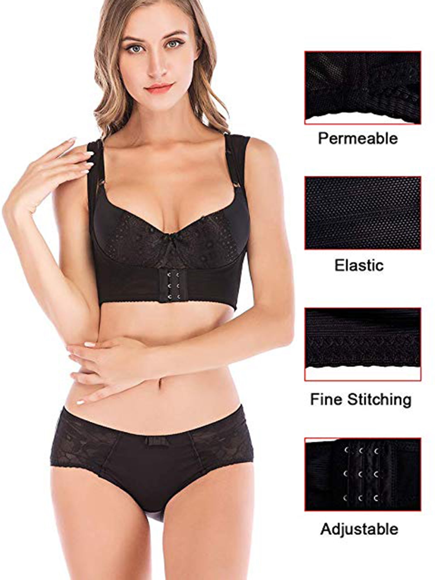 Adjustable Brace Belt Corrector, Women Posture Corrector Back Shoulder Support Hunchback Relief Humpback Correction Brace Chest Bra Support-Size S-2XL/Black/Beige,2 Pack