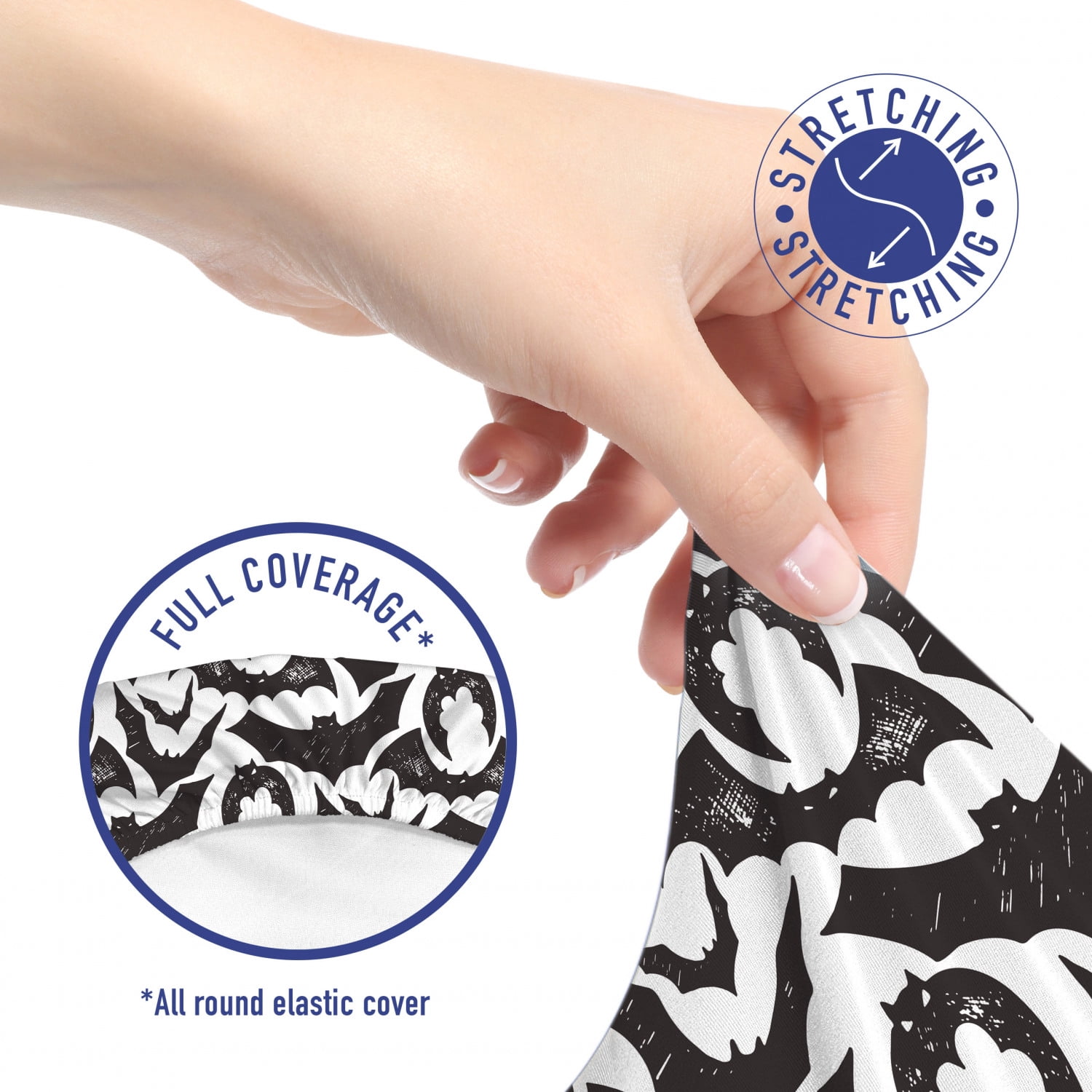 Autumn Office Chair Slipcover, Scary Bats Sketch Time of the Year Halloween Theme on Plain Background, Protective Stretch Decorative Fabric Cover, Standard Size, Charcoal Grey and White, by Ambesonne