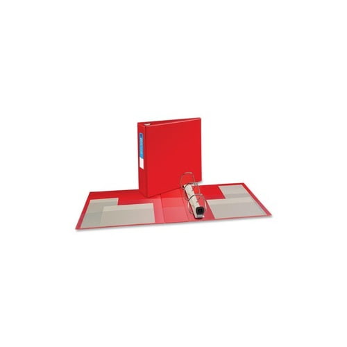 With this Heavy-Duty Binder you get one-touch operation and everyday durability. The DuraHinge(R) design is stronger, lasts longer and resists tearing, while the DuraEdge(R) feature makes the sides and top more pliable to resist splitting. A deep texture film offers a smoother finish and features a linen pattern for high-quality look and feel. The exclusive EZD(R) rings open and lock closed with one touch, and hold more sheets than the same size slant and round rings. Also, the rings’ gap-free design keeps your papers secure so they won’t fall out. Even when filled to its 3" capacity, this binder has four stacked pockets for extra space inside the covers. The red binder is made with a nonstick poly construction for maximum performance, and features wider front and back panels that cover standard size dividers and sheet protectors. More from the Manufacturer