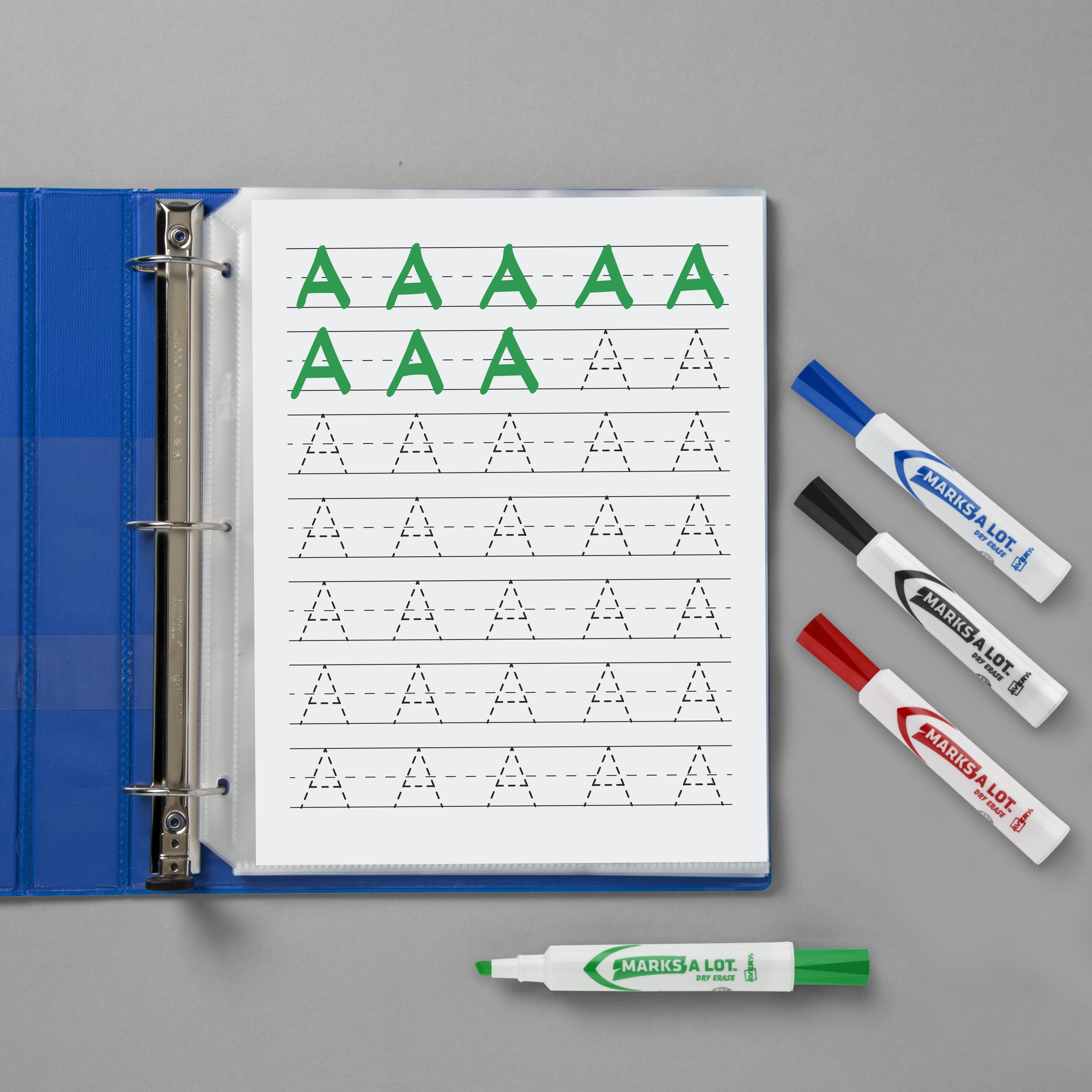 New formulation erases easily and cleanly. Improved color vibrancy and long-lasting writing. Marks on whiteboard, glass, and other nonporous surfaces. Durable chisel tip (1/5") marks in a variety of widths. Cap can be left off for 24 hours without dry-out. Safe to use at home or school. Low odor, non-toxic. Marker Type: Dry Erase Markers; Assortment: 1 Black; 1 Blue; 1 Brown; 1 Green; 1 Orange; 1 Purple; 1 Red; 1 Yellow; Color(s): Assorted; Tip Type: Chisel.