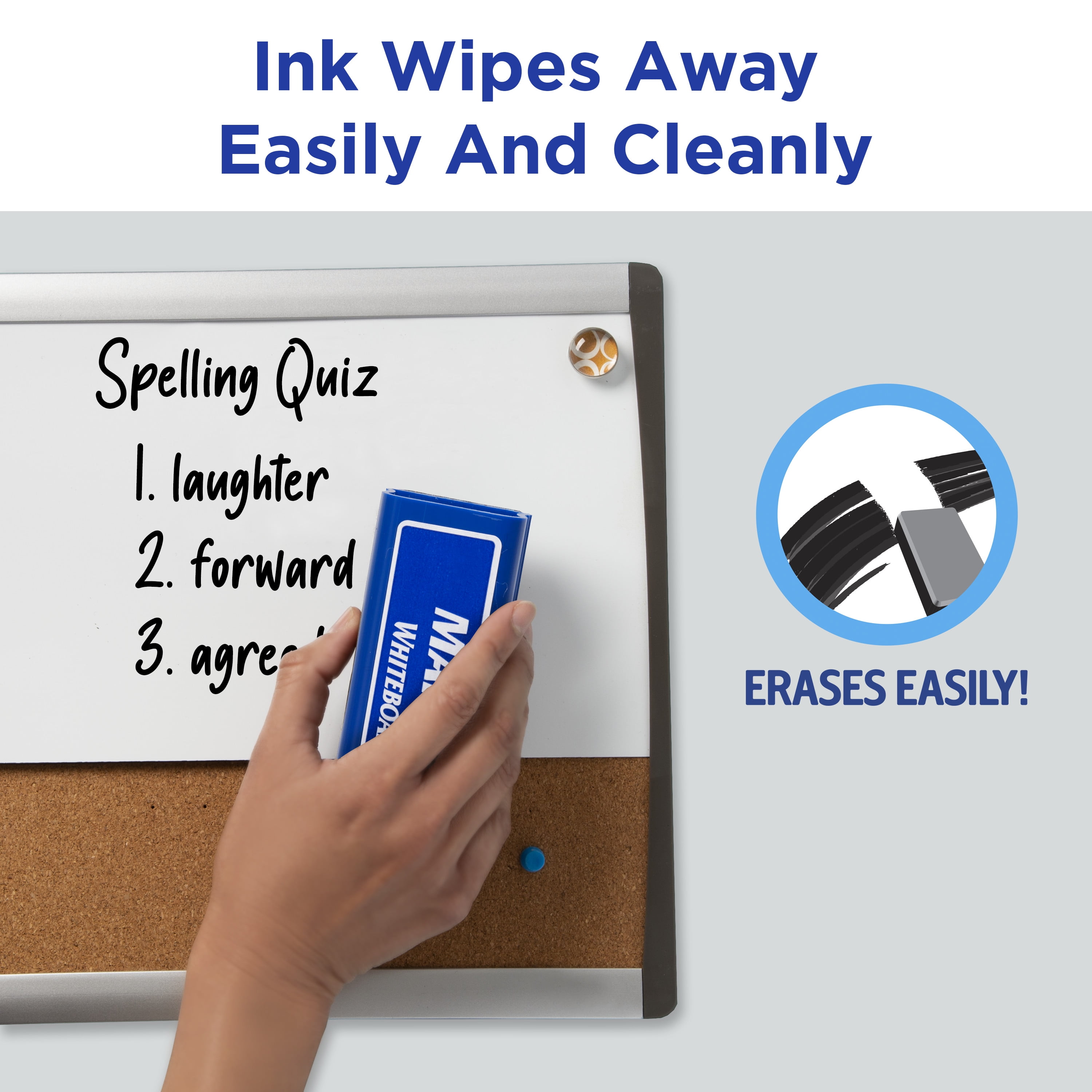 - Ink wipes away easily from compatible surfaces with an eraser or dry cloth