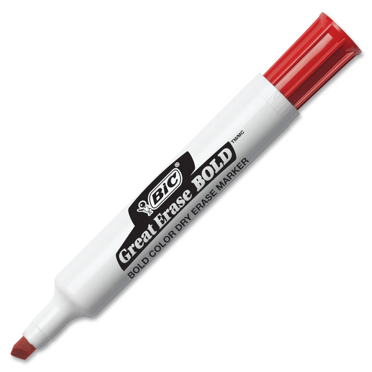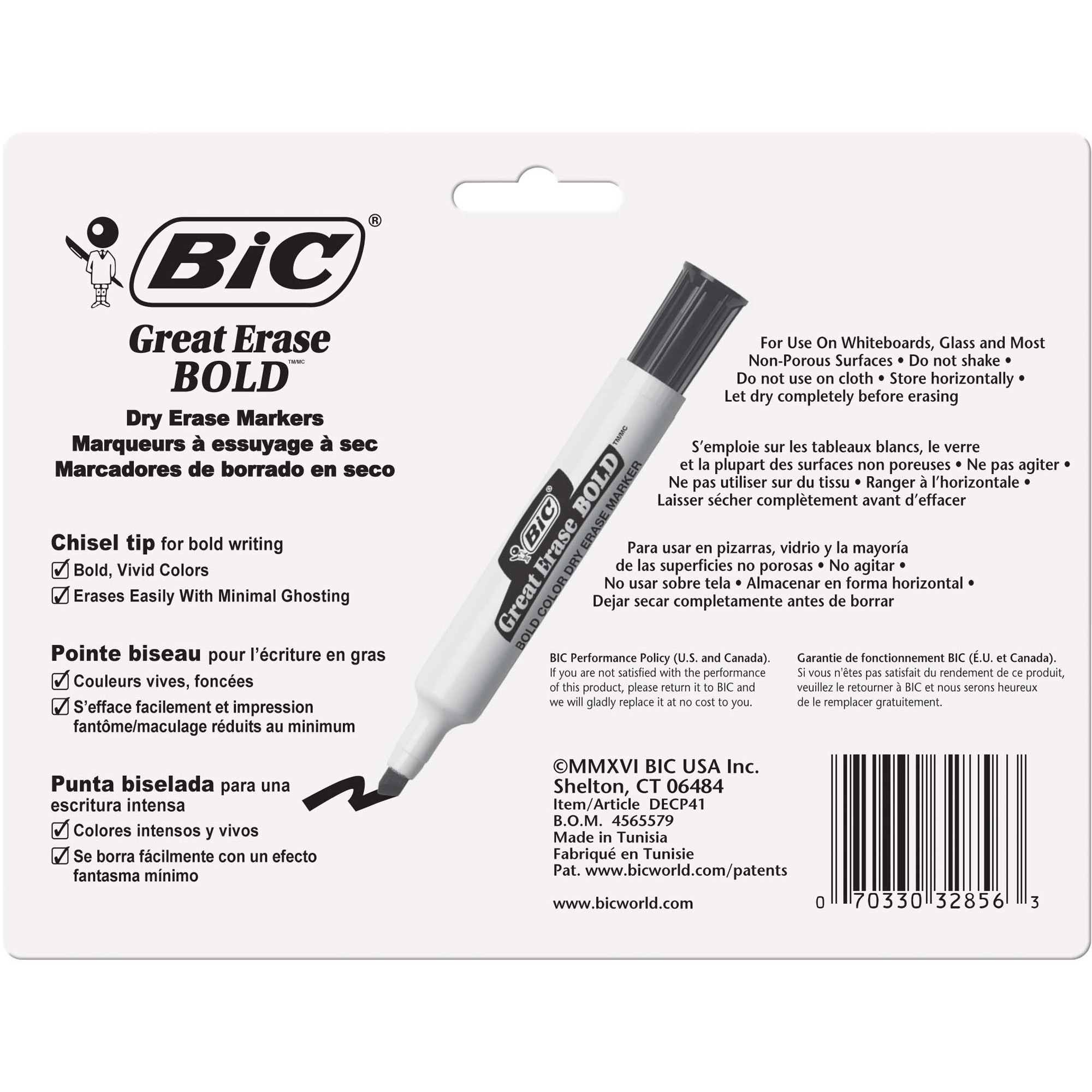 BIC Intensity BOLD Dry Erase Markers deliver smooth ink flow with bold, vivid colors. Ideal for use on dry-erase boards, glass and most nonporous surfaces, marks erase easily with minimal ghosting or staining. The versatile chisel tip allows you to create both broad and fine lines. These ACMI-approved and non-toxic whiteboard markers are great for use at home, office, and school.