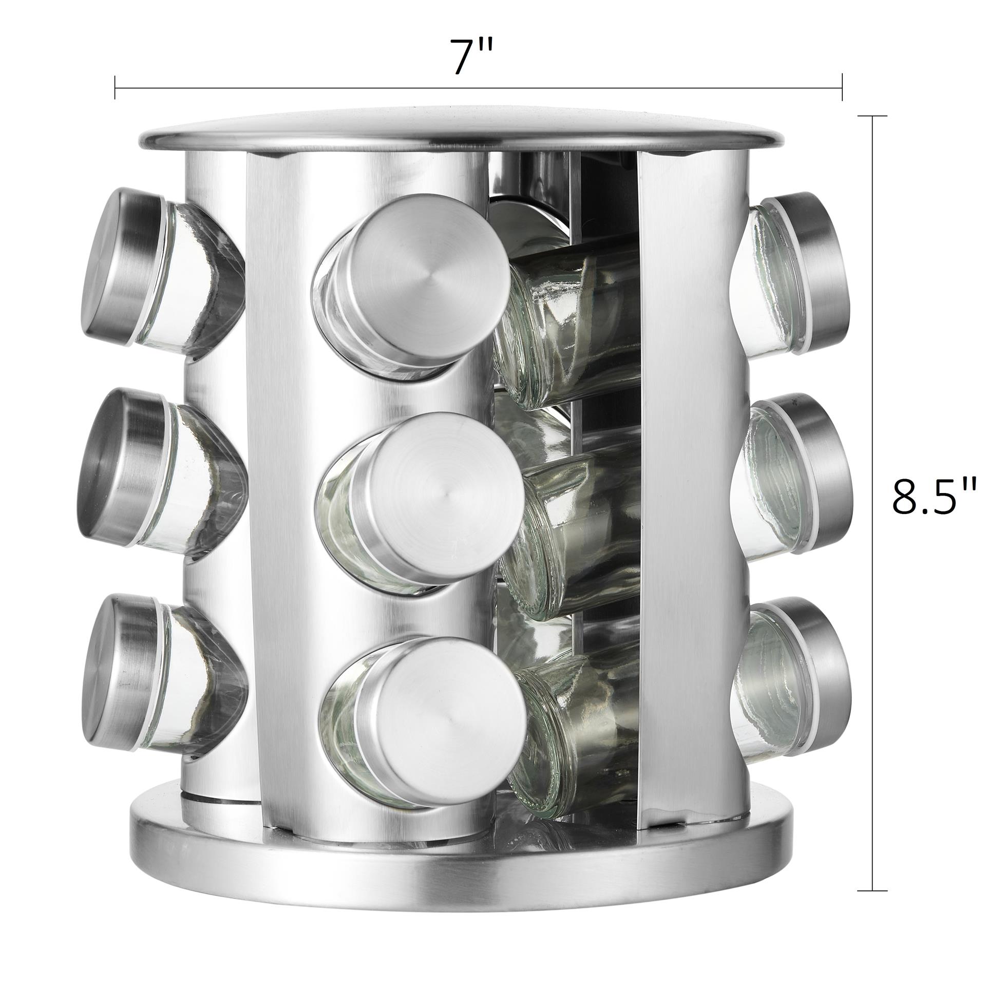 Reduce Clutter, Organize Spices & Make Cooking Enjoyable With Our Rotating Spice Organizer Rack!Whether you want to save space or just keep your spices neatly organized in one convenient spot, our revolving spice organizer rack has you covered. It’s made with modern kitchens in mind to put the fun back in cooking and make day-to-day cooking simpler.Sleek & Smooth Rotating Chassis For Convenient UseThe spice cabinet organizer uses a 360-degree rotating design that lets you quickly revolve it to get the spices you need. The sleek build of the revolving spice rack helps save space while keeping the jars within arm’s reach along with adding a modern touch to your kitchen decor.Solid Stainless Steel Build For Long Term UseEach spice rack with jars is crafted with close attention to even the smallest details using quality stainless steel with a sleek and modern design. Our spice storage rack is resistant to rust, corrosion, and scratches to maintain its elegant charm even in the long run.
