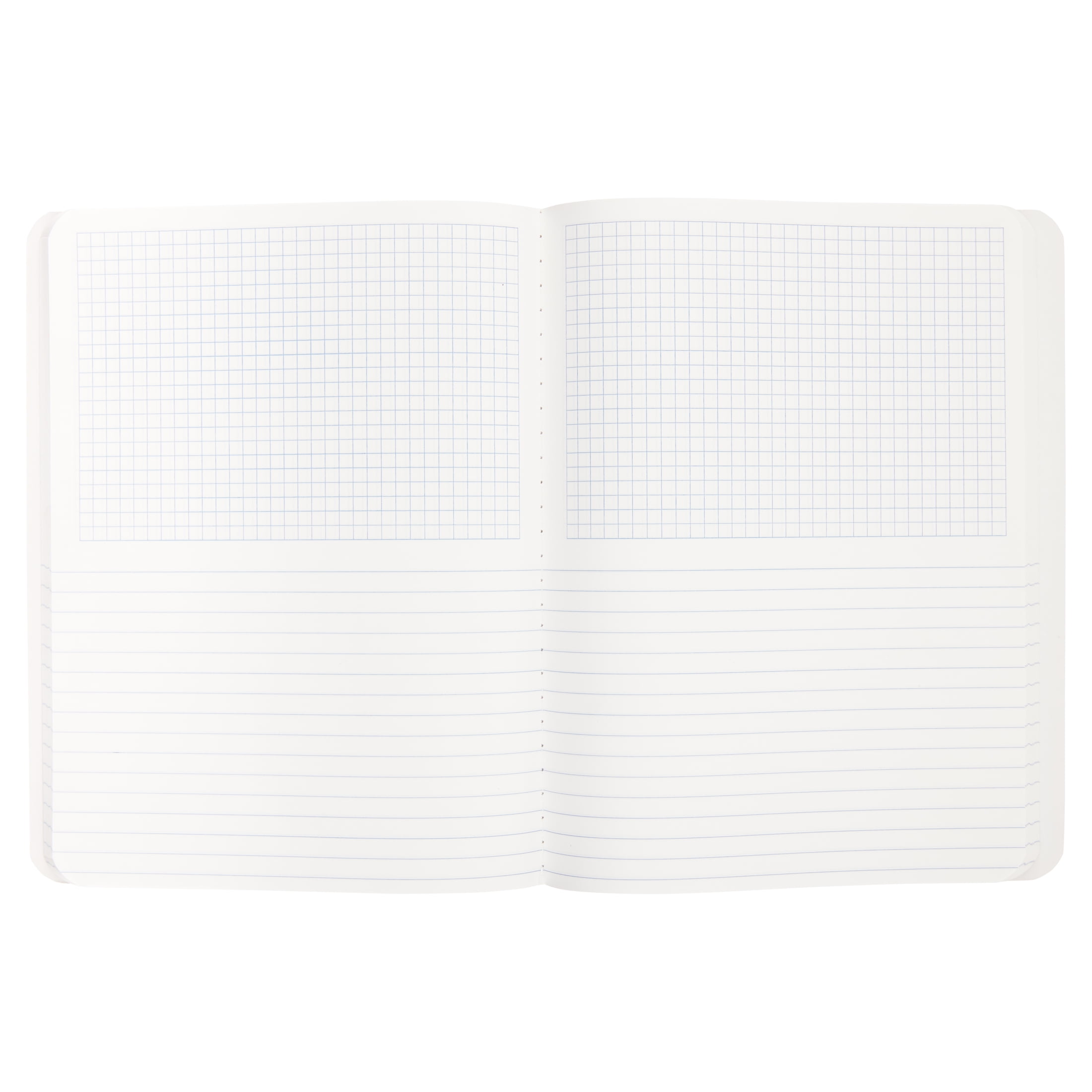 - Upper half of each page is graph paper with 5 squares per inch, while bottom half is college ruled for notetaking