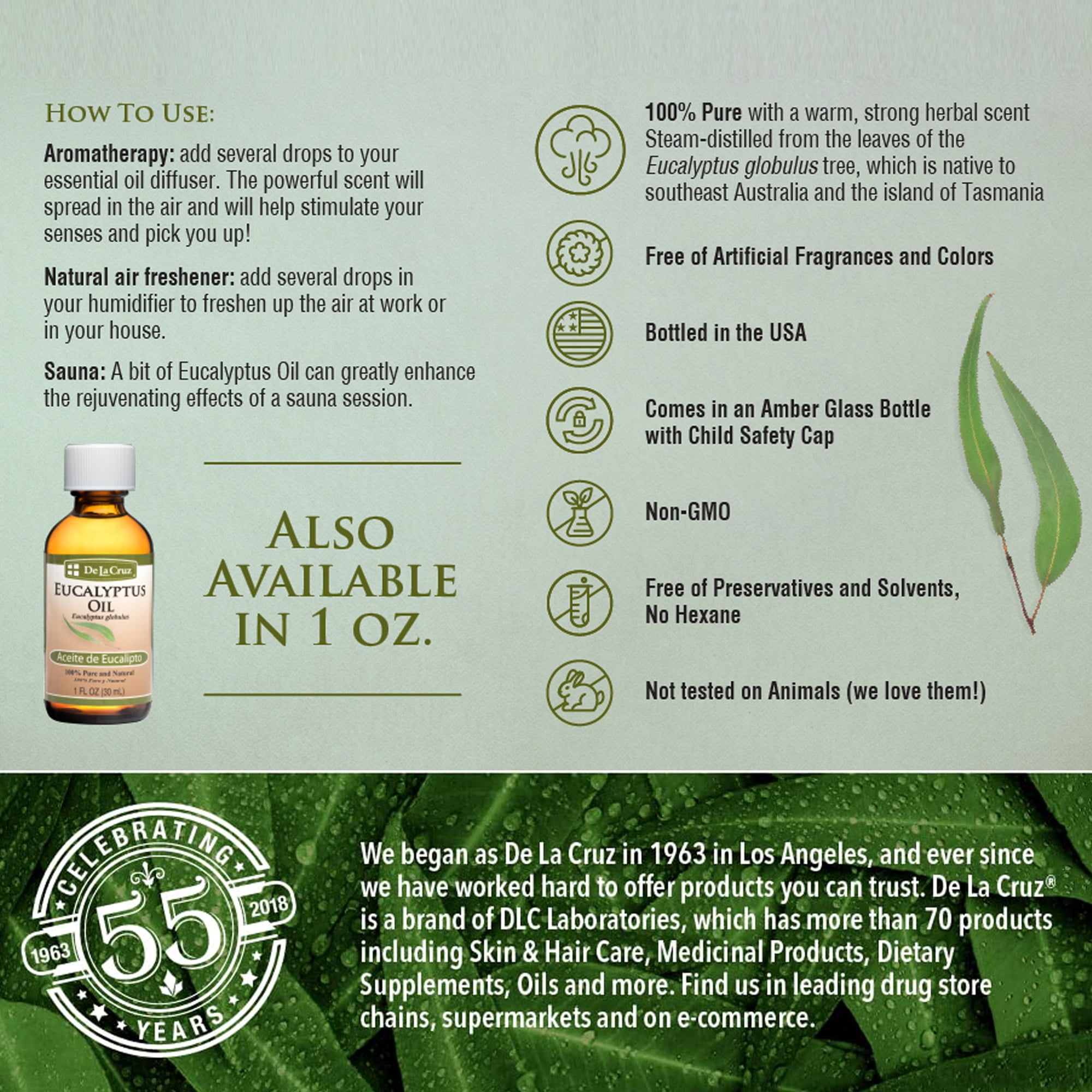 - 100% Pure and steam-distilled eucalyptus essential oil
