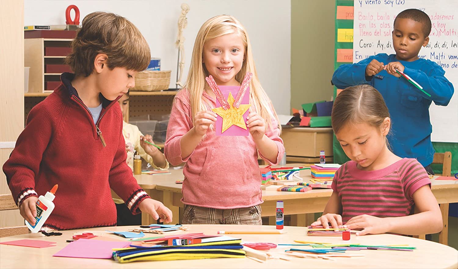 Help your kids learn how to glue in a fun, frustration-free way with Elmer’s Re-Stick Glue Sticks. Repositionable for up to 5 minutes, you can watch kids problem solve and perfect their projects without worrying about a mistake spoiling the fun. This friendly feature also makes the glue sticks great for older students aiming for precise placement of photos and graphs in school projects or science fair displays. Elmer’s glue sticks go down smooth, dry clear and feature a non-toxic, washable, photo-safe formula. It’s no wonder parents and teachers everywhere trust the #1 teachers brand, Elmer’s.