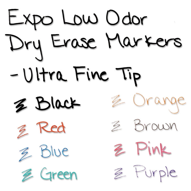 Track, schedule, collaborate, and present with vibrant Expo Dry Erase Markers. They feature vivid ink and exciting colors that stand out—perfect for planning, presentations, lessons, calendar boards, and personal organization. With an EXPO eraser, these EXPO markers erase cleanly and easily from whiteboards and most nonporous surfaces. The low odor ink is perfect for classrooms, offices, and homes, while the fine tip is great for accurate, detailed lines.