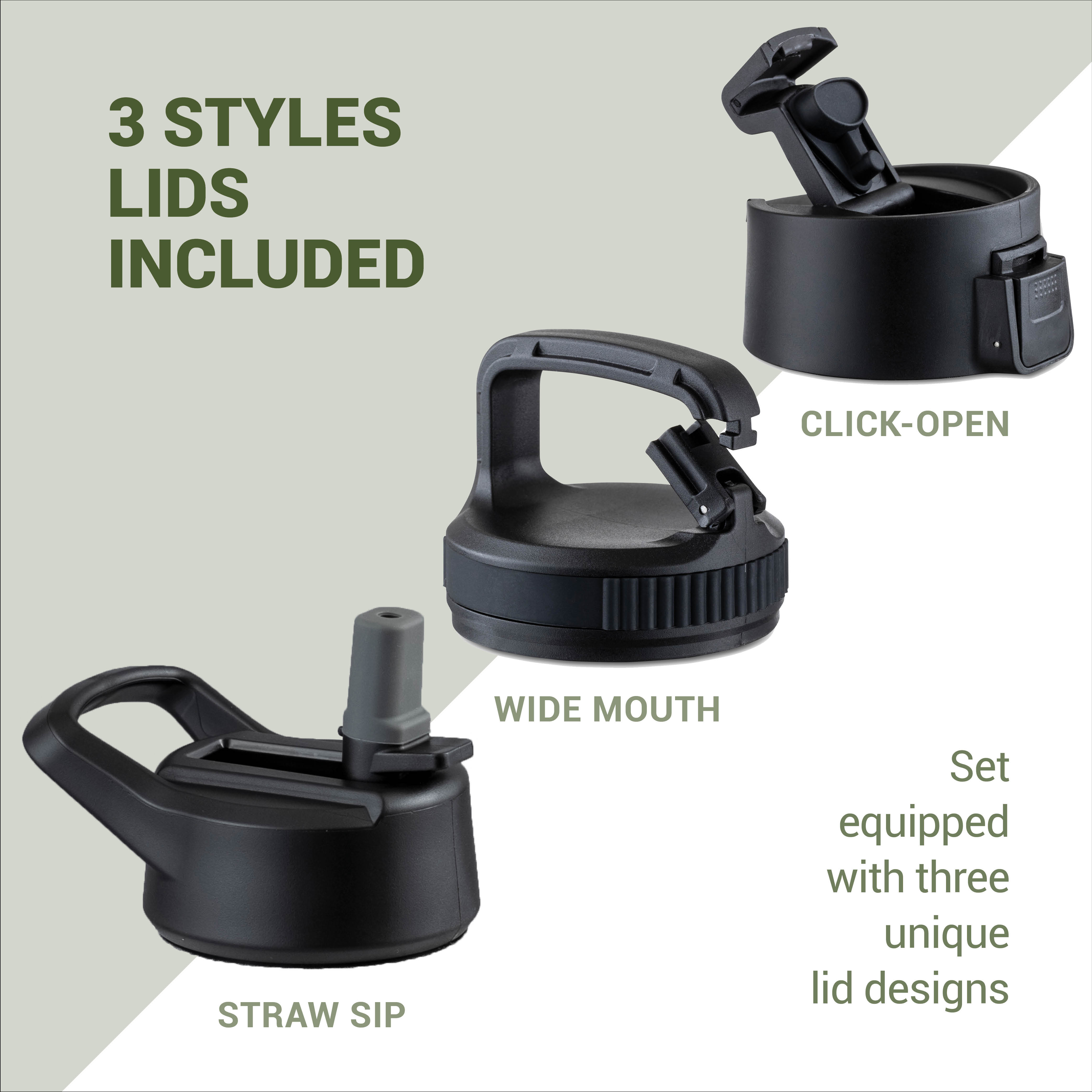 - The triple lids-the drinking bottle is equipped with three individual lids to serve all your needs. Use the one with the mouthpiece for sipping hot drinks, the one with the straw is just right for cold beverages, and the removable lid is what you need for drinks containing ice or fruit. The leakproof and shatterproof-the bottle is absolutely leakproof and shatterproof, making it the choice for rough and tumble use. Perfect for hiking, biking, boating, the gym, work, school, and home. The bottle is safe in backpacks, beach bags, or the edge of your countertop.