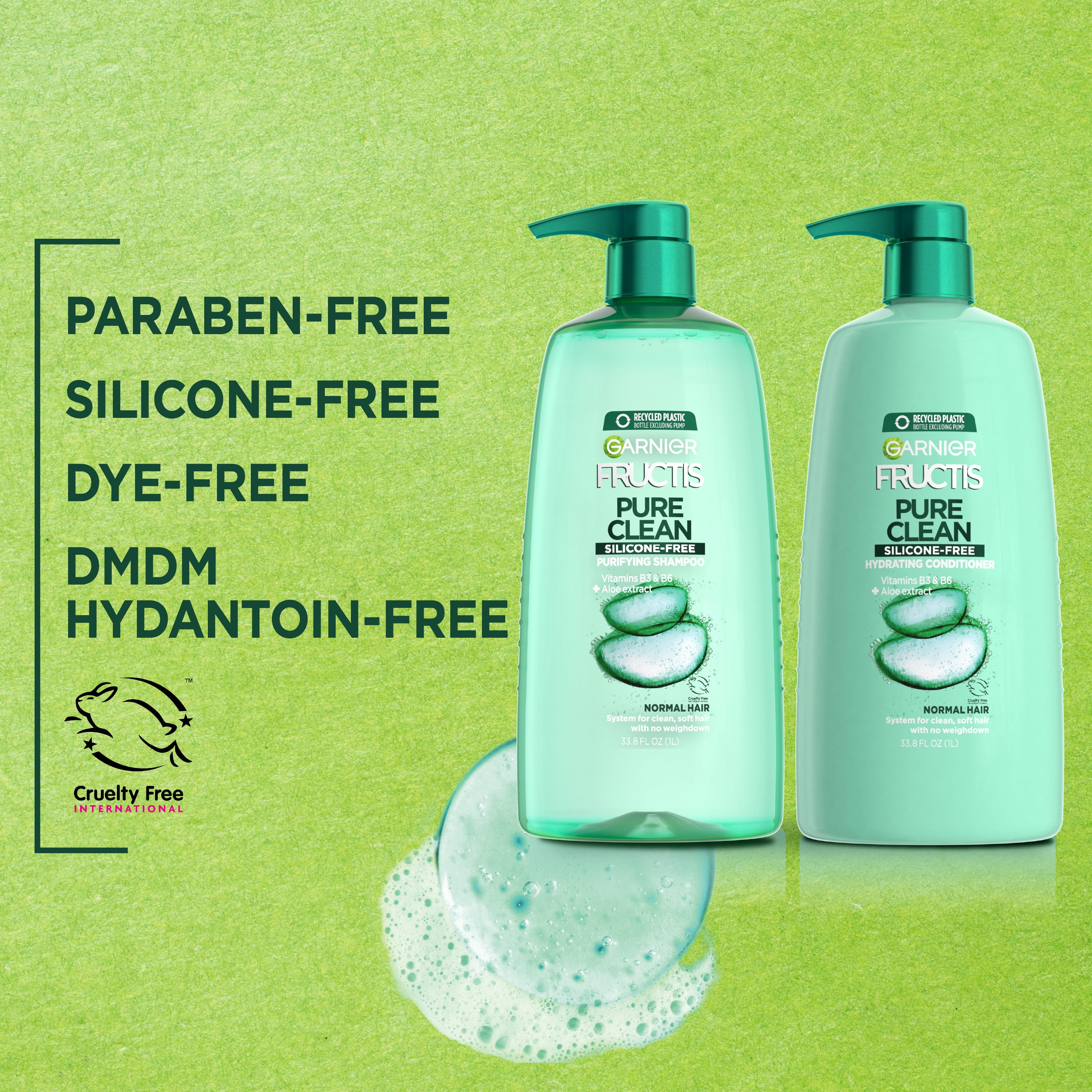 It. Cleans. Trust Us. Your new favorite Pure Clean Shampoo and Conditioner is for all hair types and provides the freshest clean for everyone. Infused with Aloe Extract and Vitamin E, you’ll have healthier looking hair at every wash. Free of the bad stuff like parabens, silicones, and dyes! Add the detangler to your routine to control frizz and untie knots. Up to 96hr of non stop freshness for hair and scalp. COMMITED TO MAKING GARNIER A GREENER BEAUTY BRAND: As a leading global beauty brand, we aspire to create a positive impact by paving the way towards more and more sustainable beauty that’s accessible to all of us. Additionally, all Garnier products, globally, are officially approved by Cruelty Free International under the Leaping Bunny Programme. *Packaging May Vary