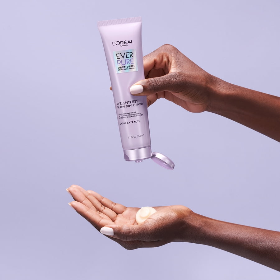 L’Oreal Paris EverPure Weightless Blow Dry Primer with rose extract helps perfect blow dry results by providing enhanced style memory and up to 48-hour frizz control. Formulated with 450F heat protection, our primer helps keep hair looking nourished, smooth and beautifully shiny – without weighing down. OUR PUREST RESPECT FOR YOUR HAIR – 100% sulfate-free, paraben-free, dye-free, gluten-free and vegan. Validated by hair colorists.* Because You’re Worth It *Validated by an internal expert team of professional hair colorists with extensive in person testing. Not Applicable