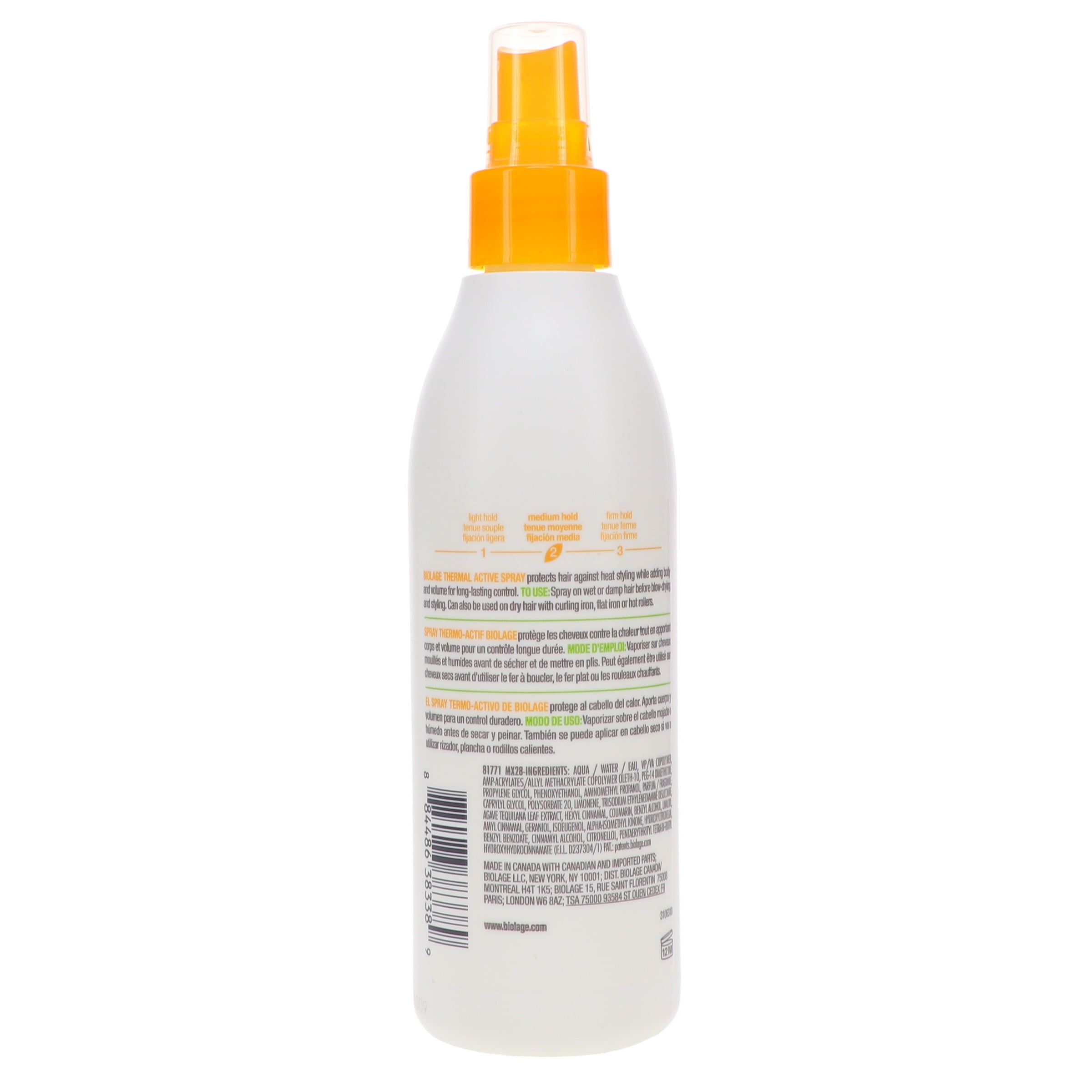 Reacts to heat from styling tools Creates a thermal shield Protects against UV and heat Establishes a soft, healthy shine Combat the heat with Biolage Thermal-Active Setting Spray from Matrix. This lightweight spritz creates a shield around your hair shaft to prevent damage when heat is applied. It also serves as a flexible-hold styling spray that helps maintain style throughout the day. Great for every hair type.