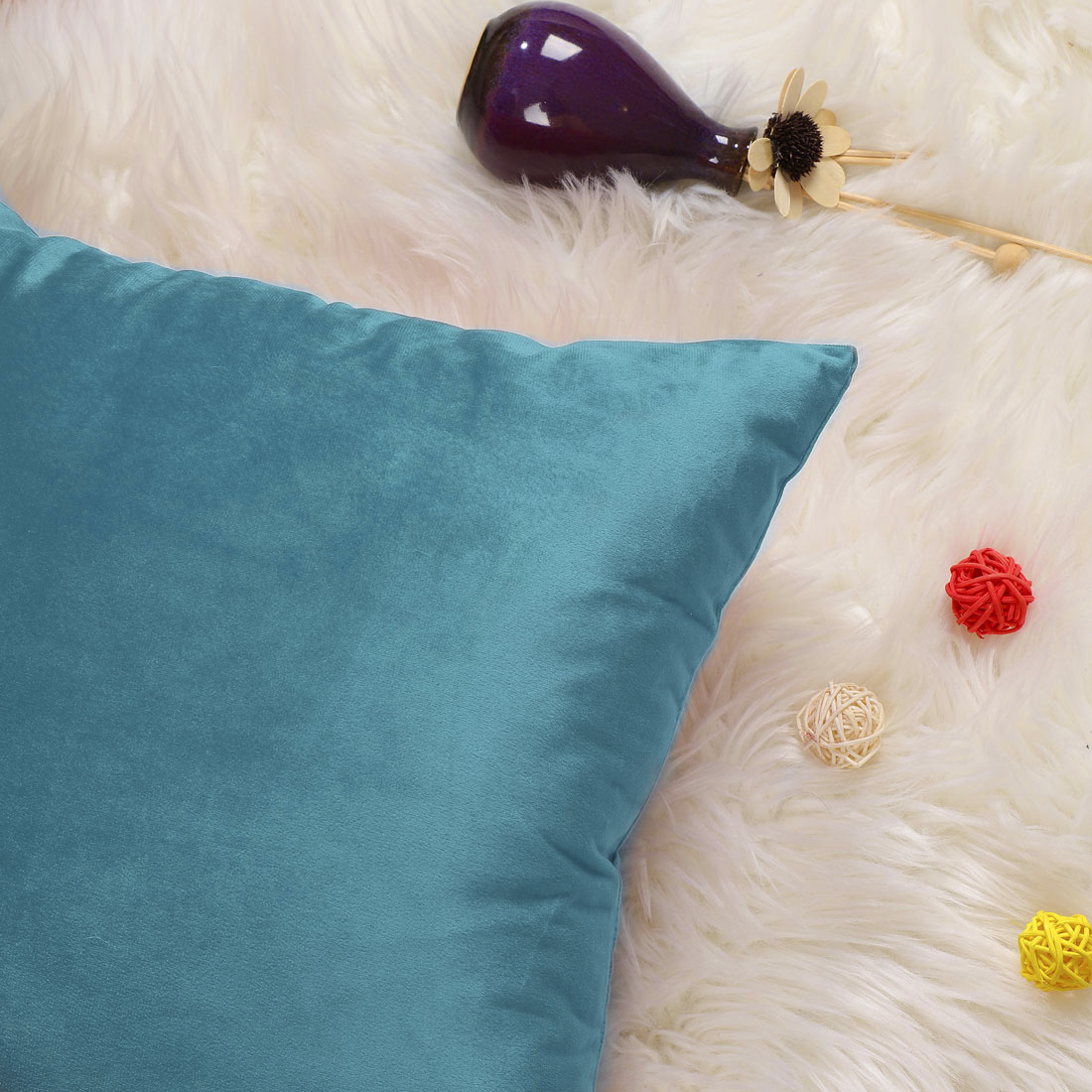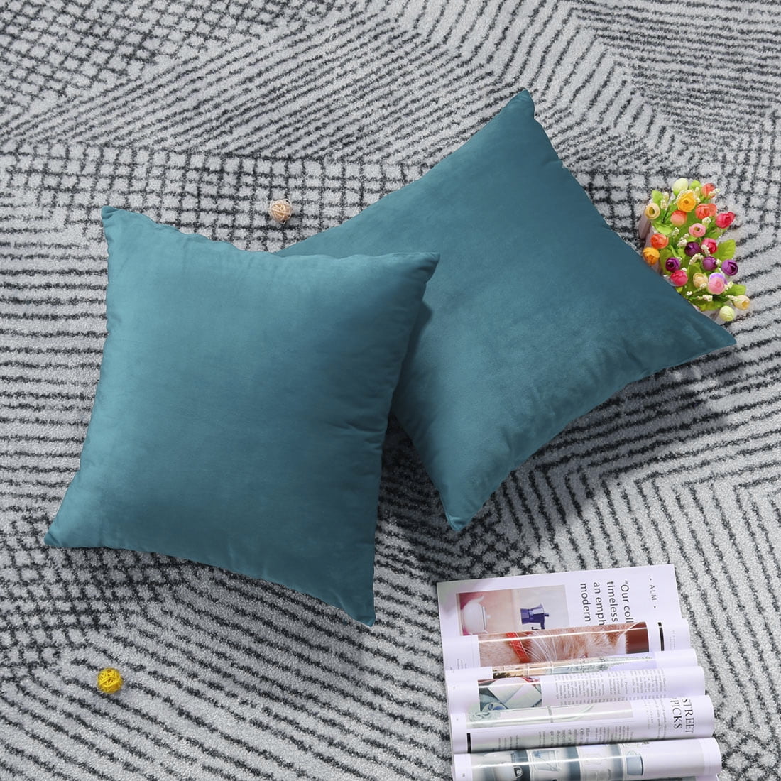 Pack of 2.Square Throw Pillow Cover. Decorative Velvet Fleece Cushion Covers for Sofa Couch Bed.Teal Blue.18 x 18