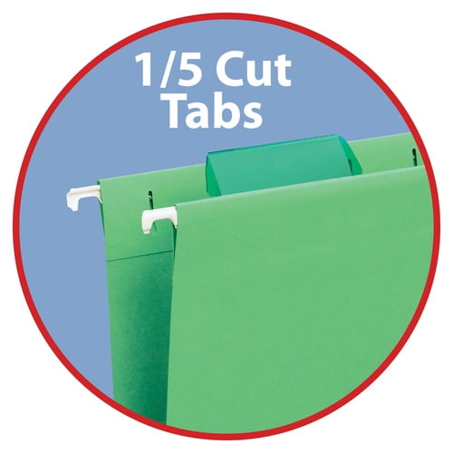 A popular choice for desk drawer files, these colored hanging folders keep papers neatly vertical in the file. Coated rod tips slide easily on file drawers. Included clear poly tabs can be positioned in the slits along the top edge in several locations. Repositionable poly tabs are 1/5 cut and 1/2" high. Hanging folders include replaceable white inserts. Use with colored interior folders to prevent misfiling. Hanging folders are made of 11 point color stock and include white inserts.