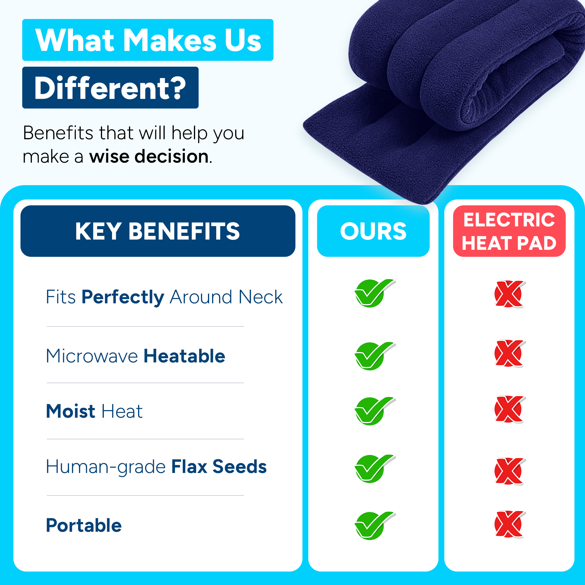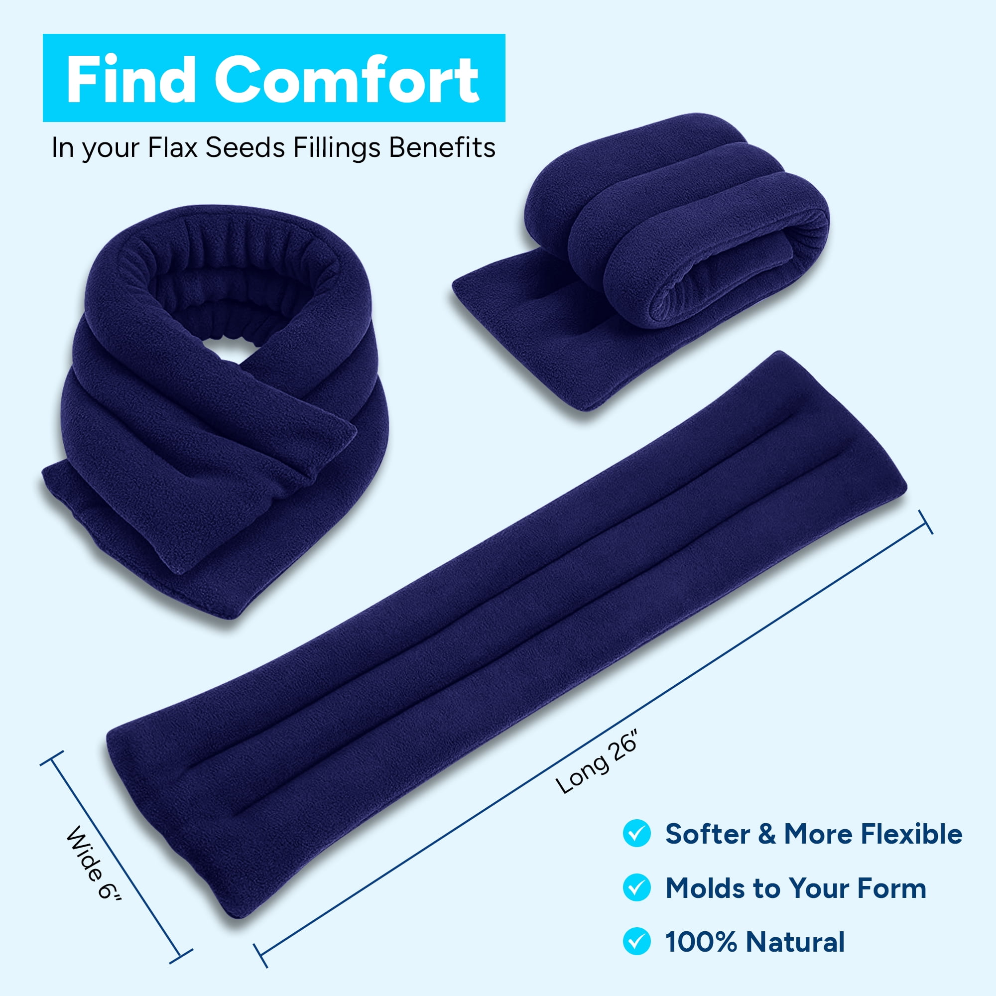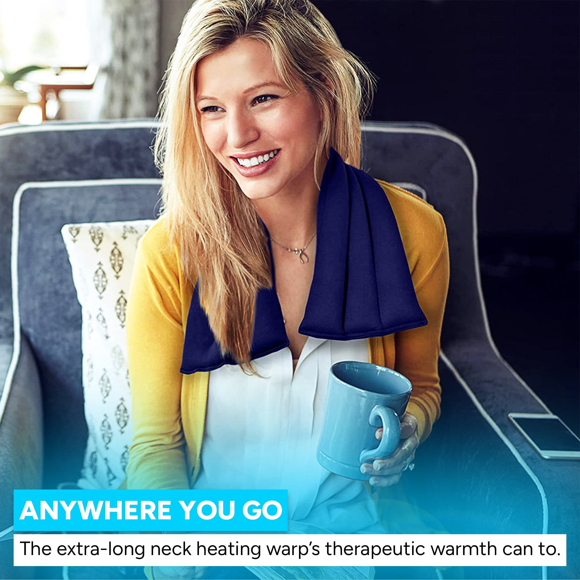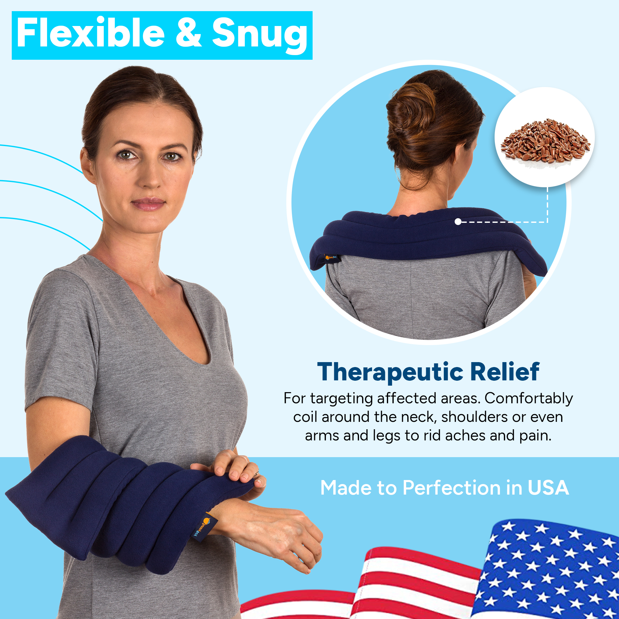- The all natural whole grain conforms to your shape and fills in every space where you need attention and relief. Comfort and flexibility is what you need! Each of our extra large heating pad & neck is easily heated in the microwave making it efficient. It holds in heat and is designed to provide a flexible and snug fit around your target areas–whether you’re standing, driving or moving around. Works better than any back pain relief patch!