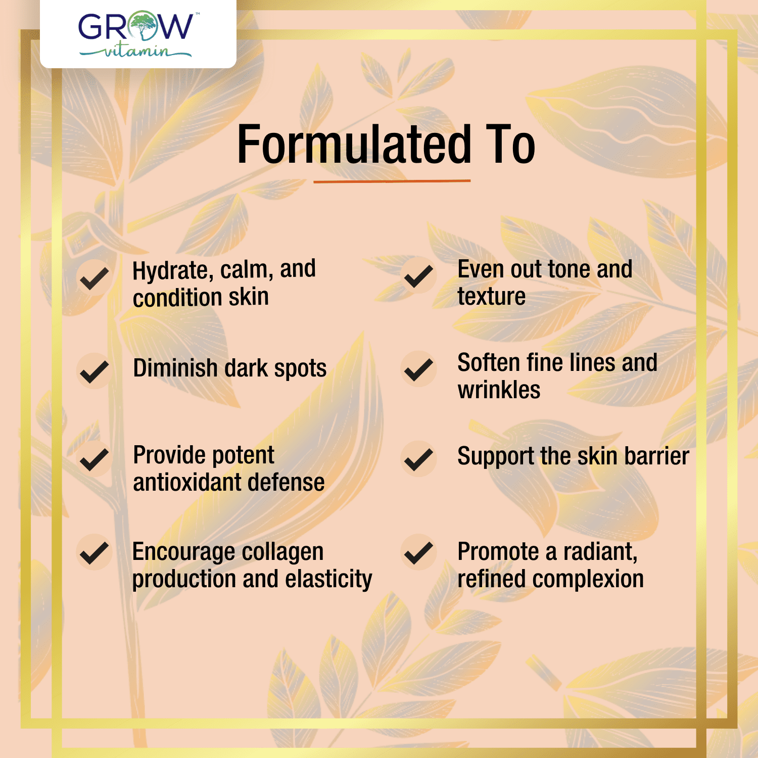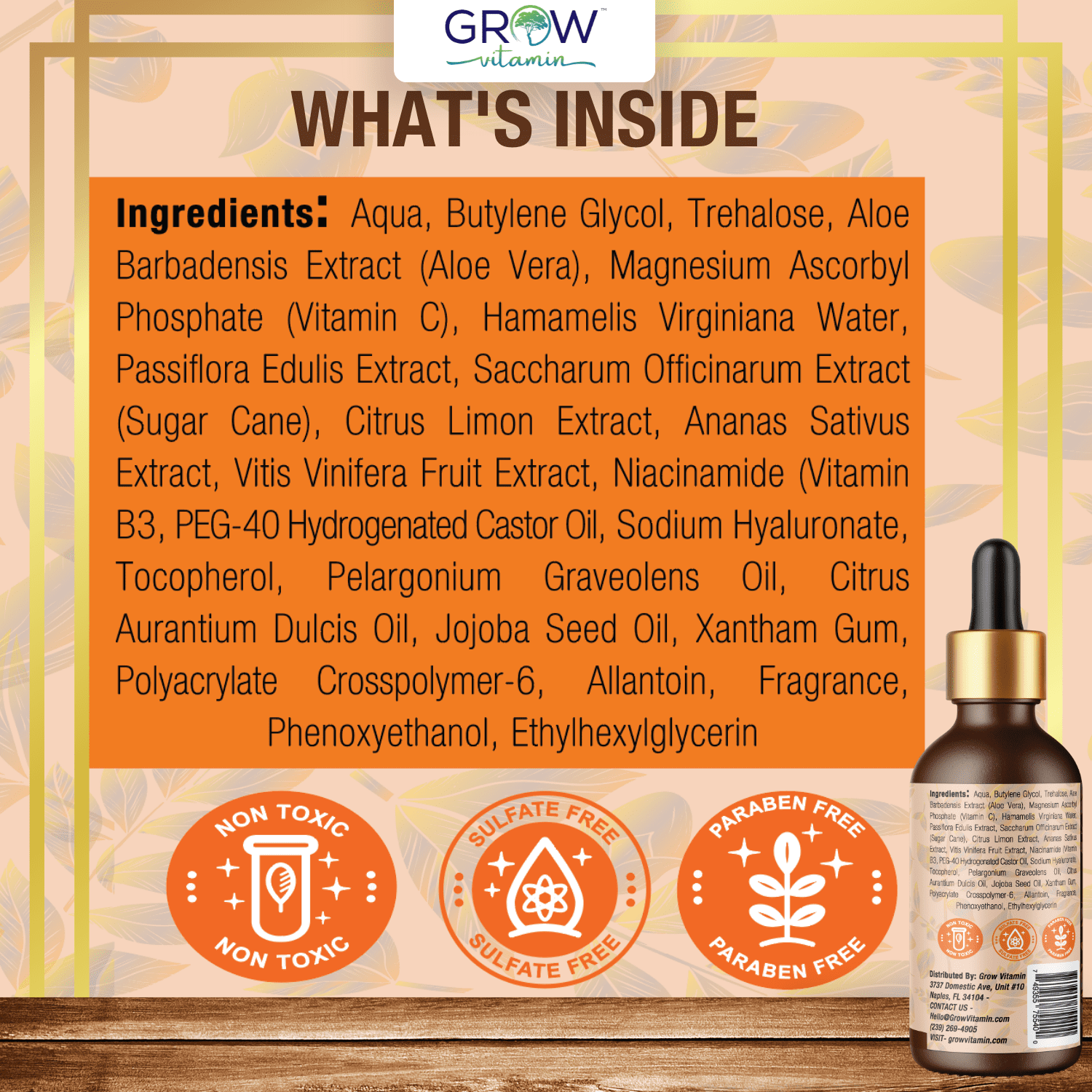 Grow Vitamin chooses not to hide these natural variations with artificial colors and synthetic stabilizers to ensure the formula is kept as pure as possible and because the appearance of the serum has no impact on the effectiveness of the formula.