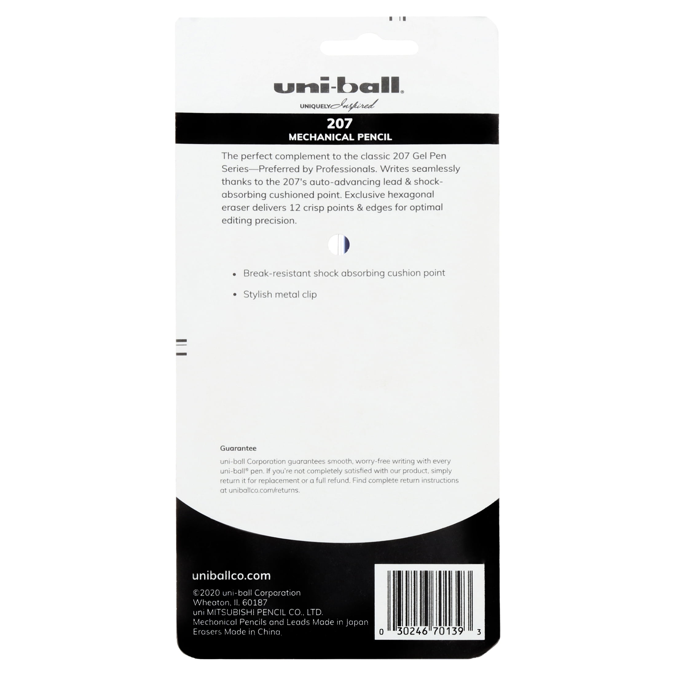 Keep your thoughts flowing with auto-advancing 207 Mechanical Pencils from Uni-ball. The 0.7 mm HB #2 lead delivers strong, broad lines. The lead moves forward as you write, so you don’t have to pause your thoughts to advance the lead. A multi-faceted eraser with twelve corners and sides allow for quick and clean revisions. With a shock absorbing tip, changes in pressure get balanced out as you write or draw, reducing breakage. These break-resistant pencils are ideal for drafting as well as for school work, art projects and note-taking. They have a comfort grip that reduces writing fatigue while assisting with precision as well.