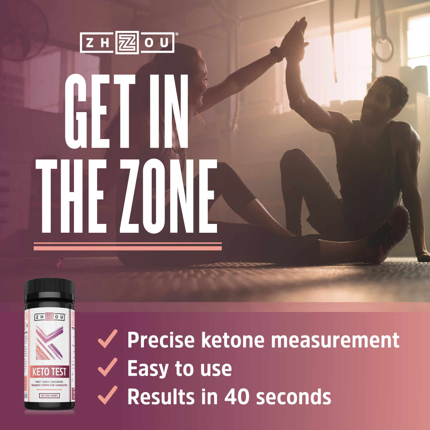 Keto Test Strips – Reagant Strips for UrinalysisIs your body really using fat as fuel? Stop guessing and start testing. Keto Test urinalysis strips give you a fast, easy, and accurate way to know if your body is in ketosis. Ideal for going Keto, Paleo, or Low-Carb, Keto Test will help you discover the ketone level in which you thrive so you can make progress towards your goals. With precise results in under 40 seconds, Keto Test is the best way to check your ketone levels in the comfort of your own home (or wherever you are). When you’re ready to push your results to the next level, use Keto Test strips alongside Zhou’s Keto Drive Performance Ketone Complex.