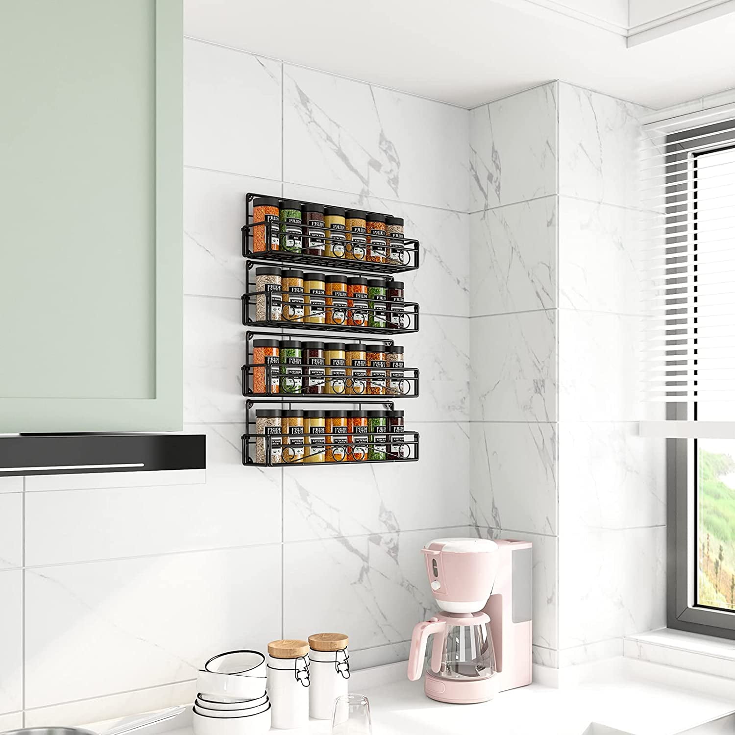 NEX Wall Mount Metal Spice Racks for Kitchen Storage Silver- Set of 4 (NX-KD58-11)