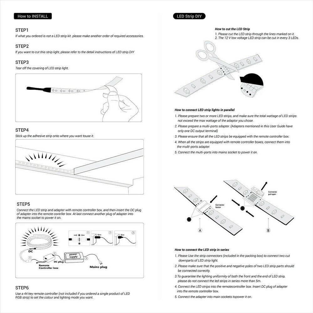 5M / 16.4ft RGB 5050 Waterproof LED Strip light SMD 44 Key Remote 12V US Power Full Kit, Color Changing Flexible strip with White color, Bonus Included
