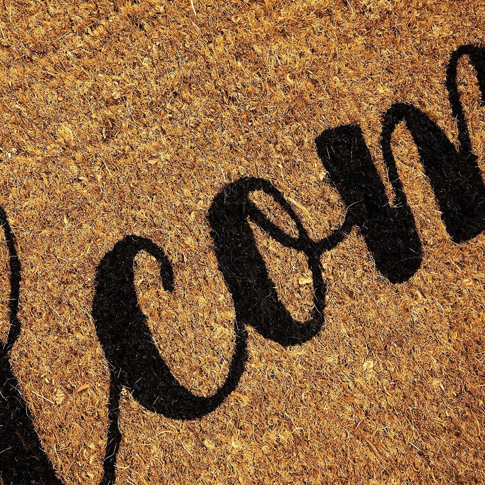 Made from natural coir fibers that can effectively grab dirt and mud from shoes, place this welcome natural doormat in any high-traffic area around your home. Welcome your visitors by placing this mat on your front entrance door, laundry room, patio doors, porches, and outdoor gardens. The natural coir fibers are sustainable and feature a black PVC backing that is slip resistant. Our coir doormat measures approximately 17 x 30 inches. Give this welcome doormat as a housewarming, Christmas, wedding, or birthday gift to any family, friends, or colleagues.