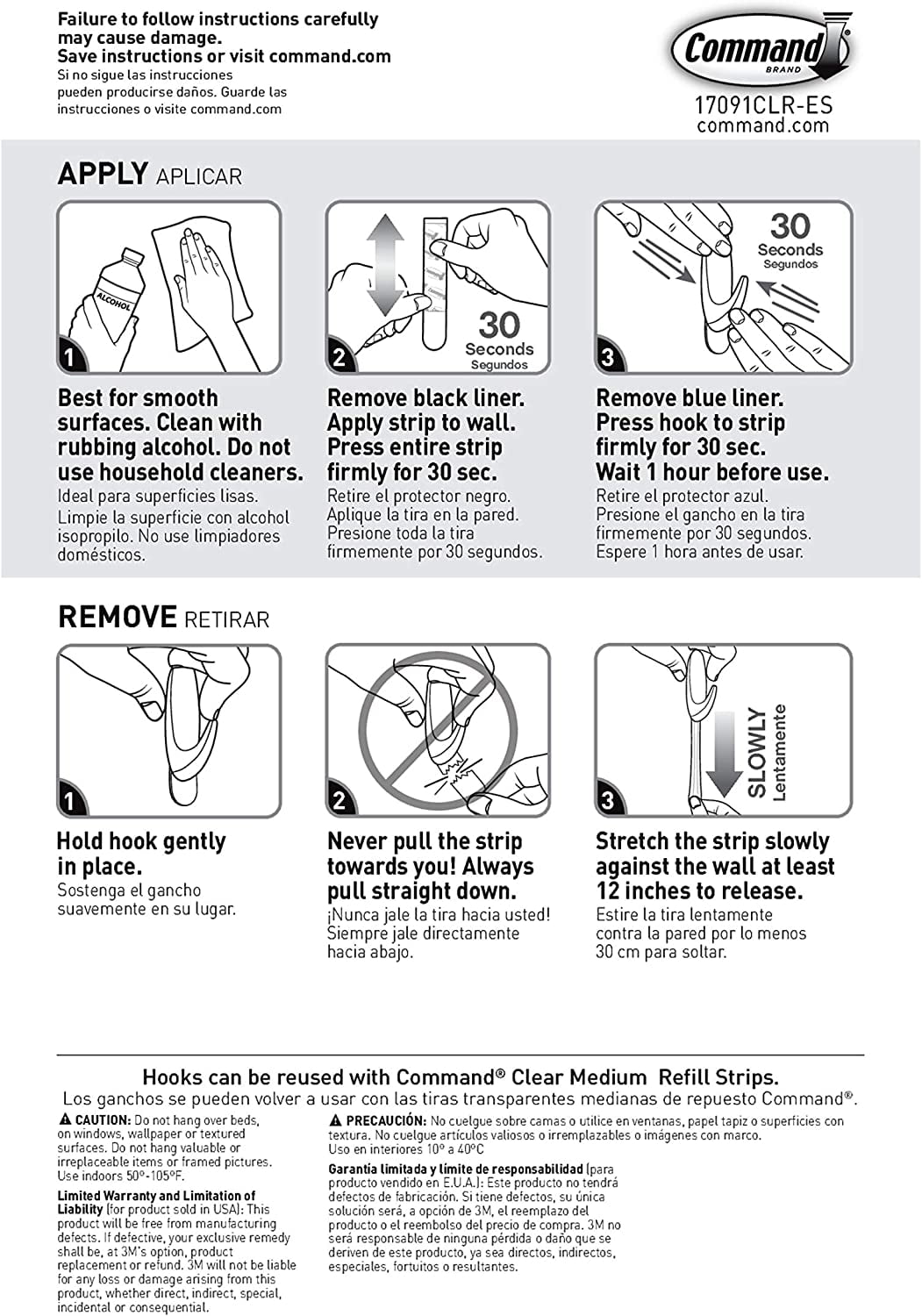 - INCLUDES: 12 clear, medium hooks, 24 strips; 1 hook holds 2 lbs