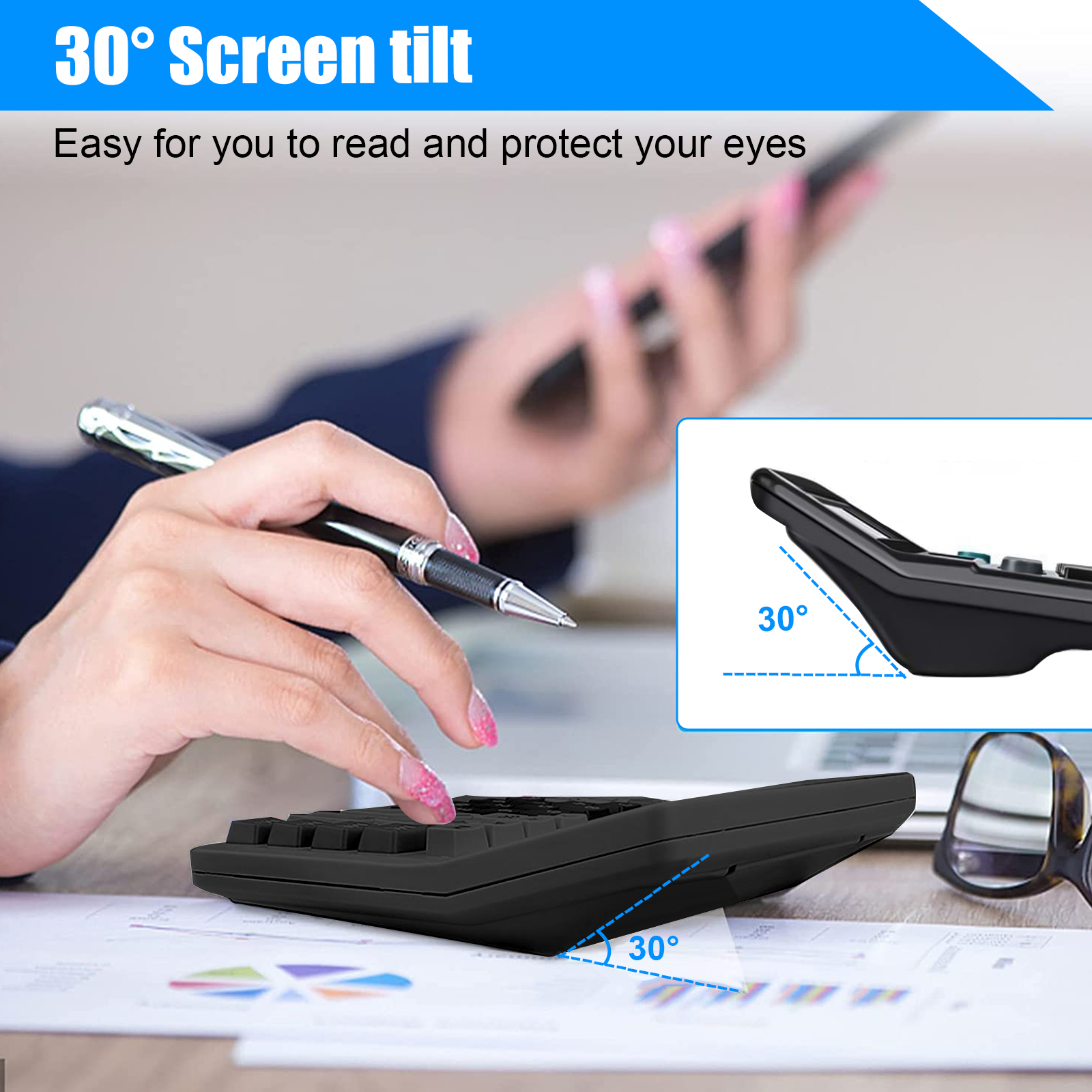 EEEkit Standard Function Desktop Handheld Calculator with 12 Digit Large LCD Display, Solar and Battery Dual Power, Handheld Basic Calculator with Sensitive Button for Office, Home, School(Black)