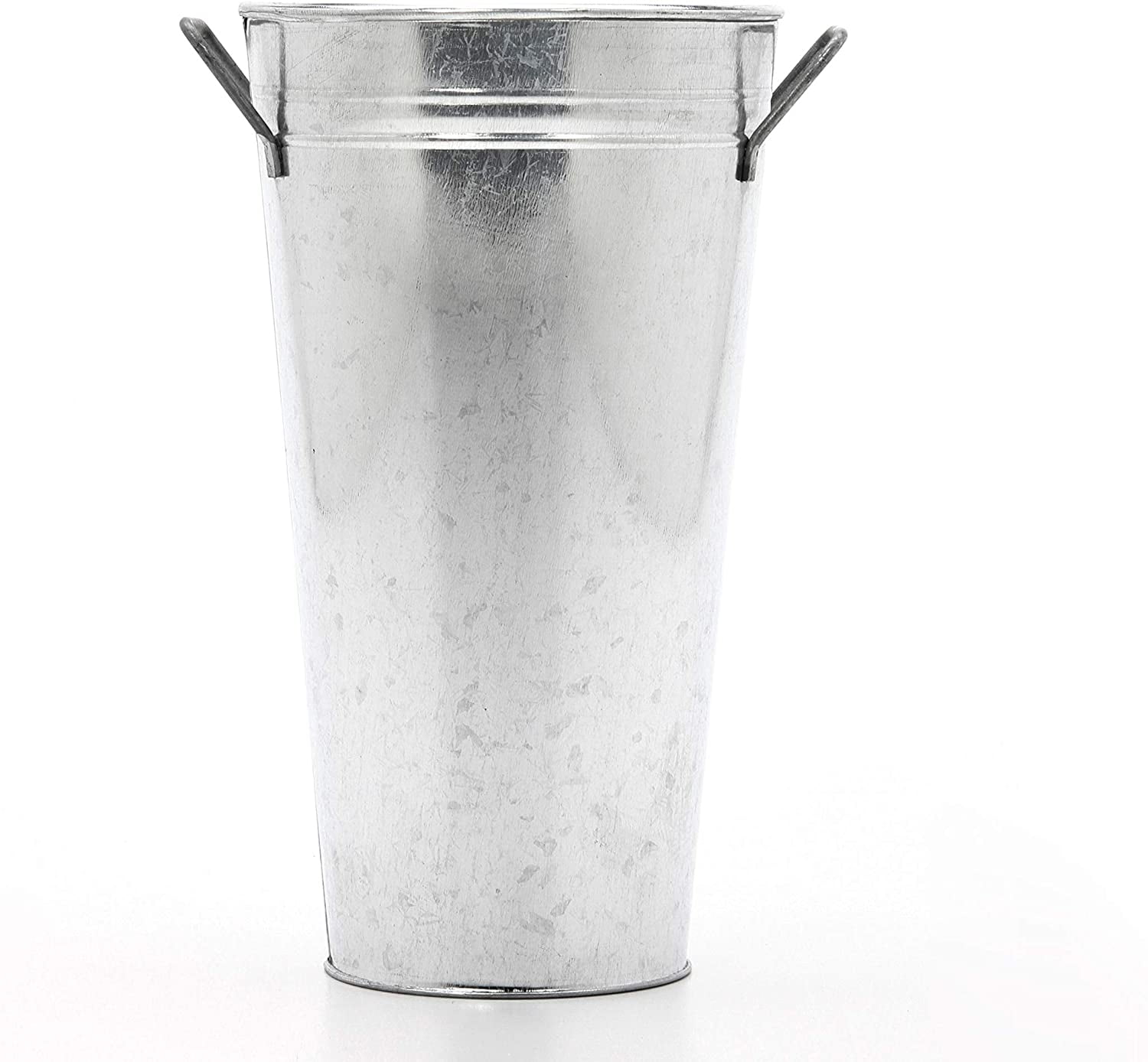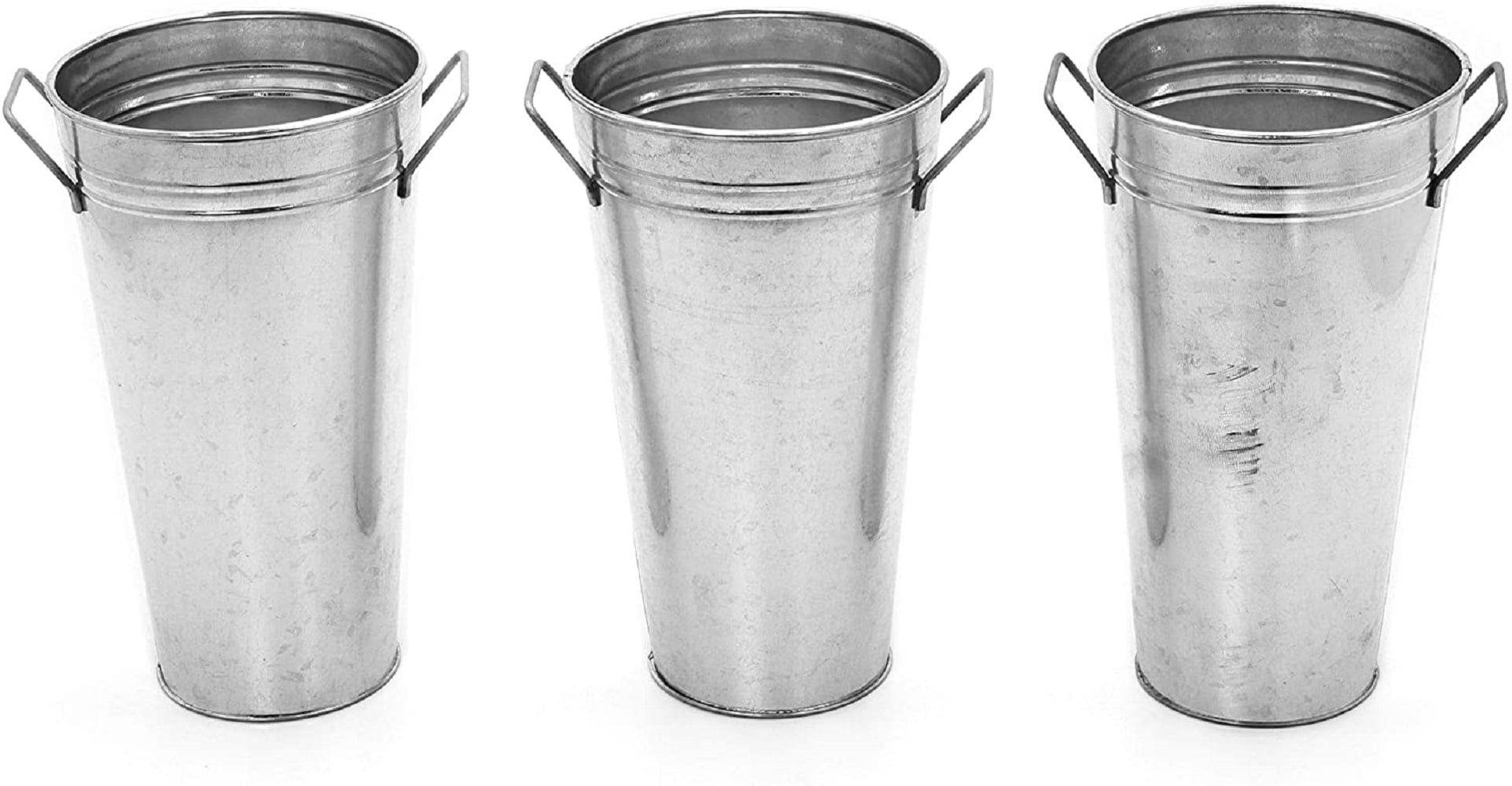 Hosley’s Set of 3 Galvanized French Bucket/Vase- 9" High. Hosley vases are for decorative use and are made for Artificial Flowers Only. Hosley vases are classically stunning and go excellent with any artificial flower arrangement big or small. You can add faux stems, greenery, bouquets, and flowers to add additional color to your decor. These vases are perfect for coffee tables, dinner tables, bookcase, shelves, mantel, kitchen, living room, & your office. Standing alone, this vase will add a decorative piece to anywhere in your home or office. TIP: if you wish to add dried florals and/or to prevent pets knocking vase down, add some floral filler marbles or rocks to help weigh the base down. Must use protective liner if used with fresh flowers (Leakage may occur).Hosley’s Set of 3, 9 inch High, Galvanized French Bucket/Vases