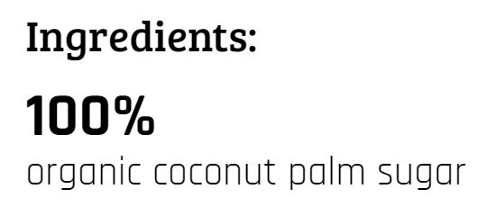 - Organic coconut sugar harvested from coconut palm trees in partnership with local organic and non GMO farmers