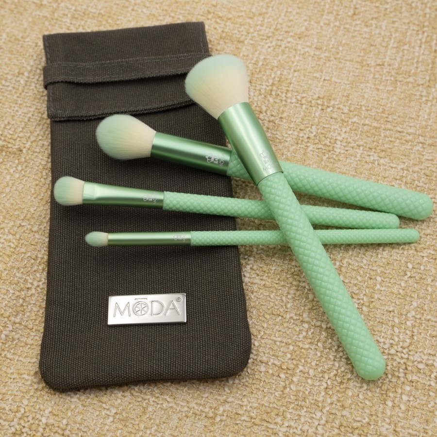 MODA Brush Renew 5pc Complete Makeup Brush Set with Biodegradable Handles and Brush Pouch, Includes – Buffer, Countour, Shader, and Detail Brushes
