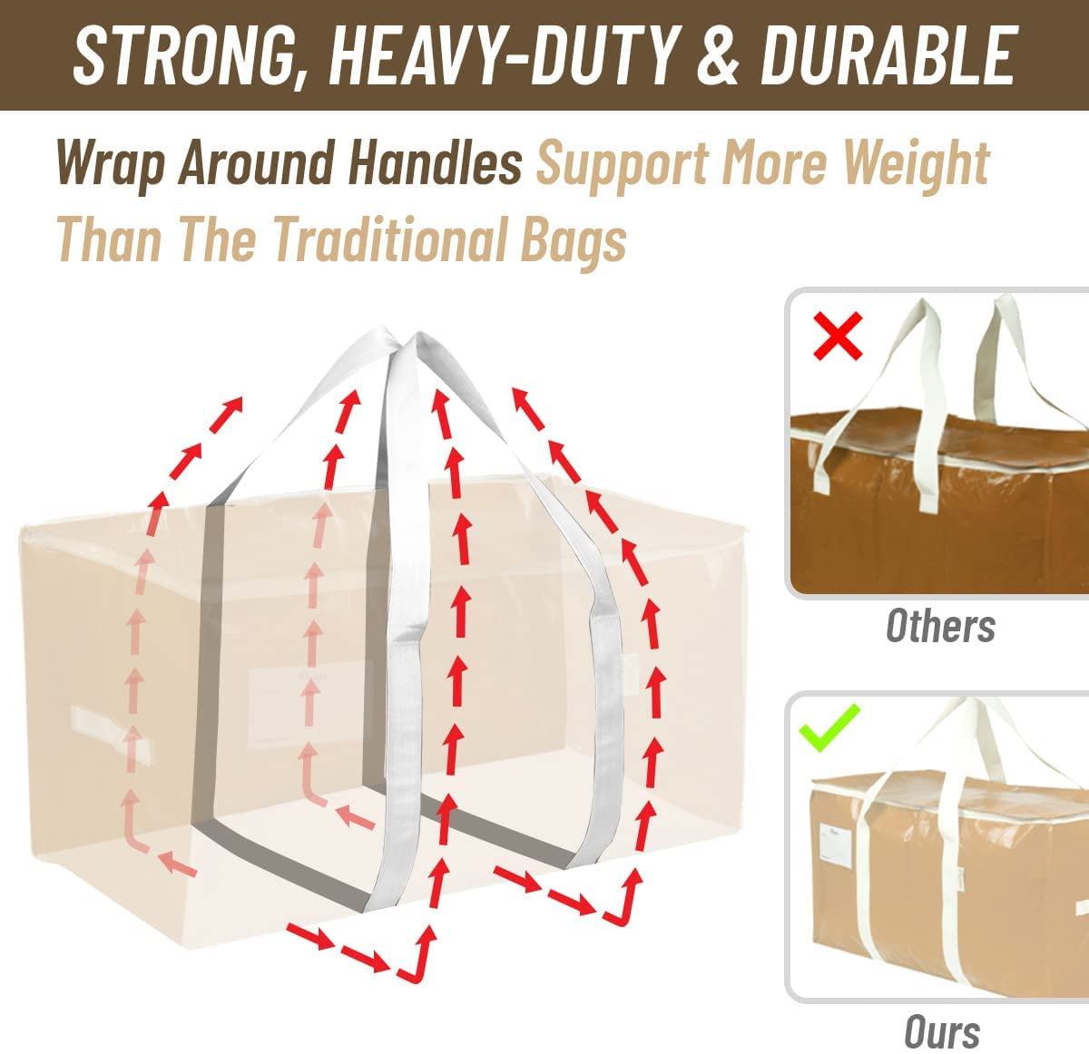 Strong, Heavy Duty Moving and Storage Bags Hold up to 50 pounds - Easy to Pack and Carry with a Spacious 3 Cubic Feet Interior