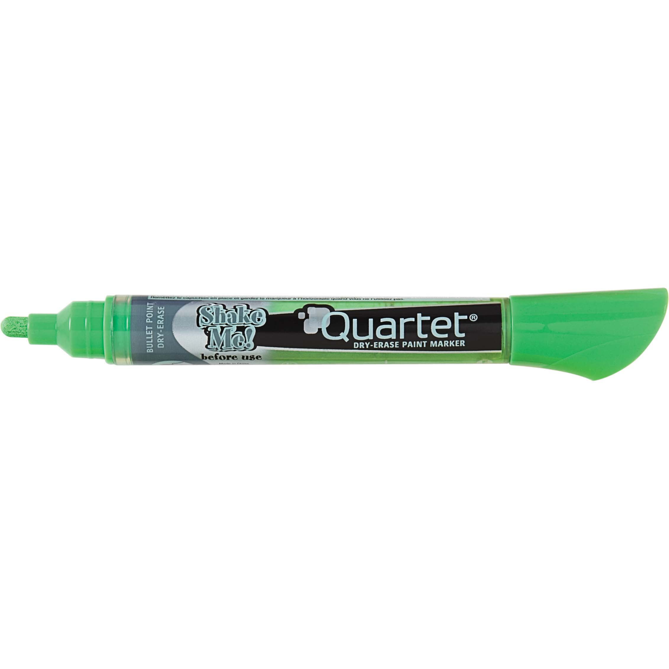 Make your messages stand out with neon. Bullet tip dry-erase paint markers are perfect for creating bold signage because they draw fat lines that are noticeable and easy to read. Eye-catching neon colors show up clearly on both dark and light surface dry-erase boards. Non-toxic ink wipes away easily for a clean erase. Each dry-erase marker features an anti-roll cap and see-through ink gauge to keep the markers in place and prevent you from being unprepared. Assorted fluorescent colors; 4 markers per pack.