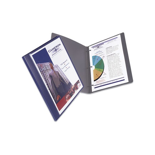 Press Guard Report Cover neatly binds and covers presentations, reports, manuscripts, proposals or other documents that require loose-leaf style binding. Two-piece cover compresses letter-size material tightly to reduce bulk. 8-1/2" fastener compressor holds the report tightly together without damaging the document or the binder hinge. Matching colored, reinforced hinges give the covers a professional appearance while aiding in color-coding. 3" capacity binder is made of heavy-duty, 20 point Press Guard stock and holds approximately 350 sheets. Side-loading binder includes a metal fastener with compressor on the binding edge side and is made with a high percentage of recycled material. Fastener dimensions are center-to-center (C-C).
