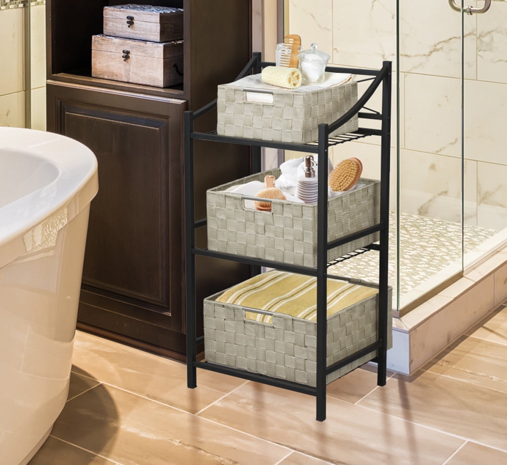 Sorbus Storage Box Woven Basket Bin Container Tote Cube Organizer Set Stackable Storage Basket Woven Strap Shelf Organizer Built-In Carry Handles (Woven Basket Set – 3 Piece, Beige)3-PIECE WOVEN BASKET BINS (BEIGE) â Provides attractive, lightweight storage while keeping household items tidy and organized âSet includes 3 utility baskets of various sizesSTORE & ORGANIZE âGreat for books, magazines, small blankets, linens, toys, crafts , baby clothes, seasonal holiday ornaments, DVDs, cosmetics, toiletries, etc â Also ideal for travel sized items, Q-tips, cotton balls, mail, accessories, office supplies, socks, ties , and much moreVERSATILE FOR ANY ROOM â Display in family room, kid’s room, kitchen, laundry area, bathroom, bedroom, and more in the home or office â Tuck away in closet, bookcase , desk, dresser drawers, pantry, shelving area , counter, table, cubbies â Complements cube storage organizer shelvesPORTABLE BUILT-IN HANDLES â Easily transports to any location â Built-in handles on larger baskets for easy access, lifting, and carrying â Lightweight and convenient container bins for organizing and decorating â Smaller baskets stack/fit inside larger baskets for storageCLASSIC DESIGN â Decorative weave pattern â Made of durable polypropylene ribbon, with stainless steel tube frame to maintain shape over time â Integrated cut-out handles âRinse with water to cleanâMeasures Approximately: XXX-Large: 12.50ââ x 12.50ââ x 6ââ â XX-Large: 11.75ââ x 11.75ââ x 5.75ââ â X-Large: 11ââ x 11ââ x 5.25ââ