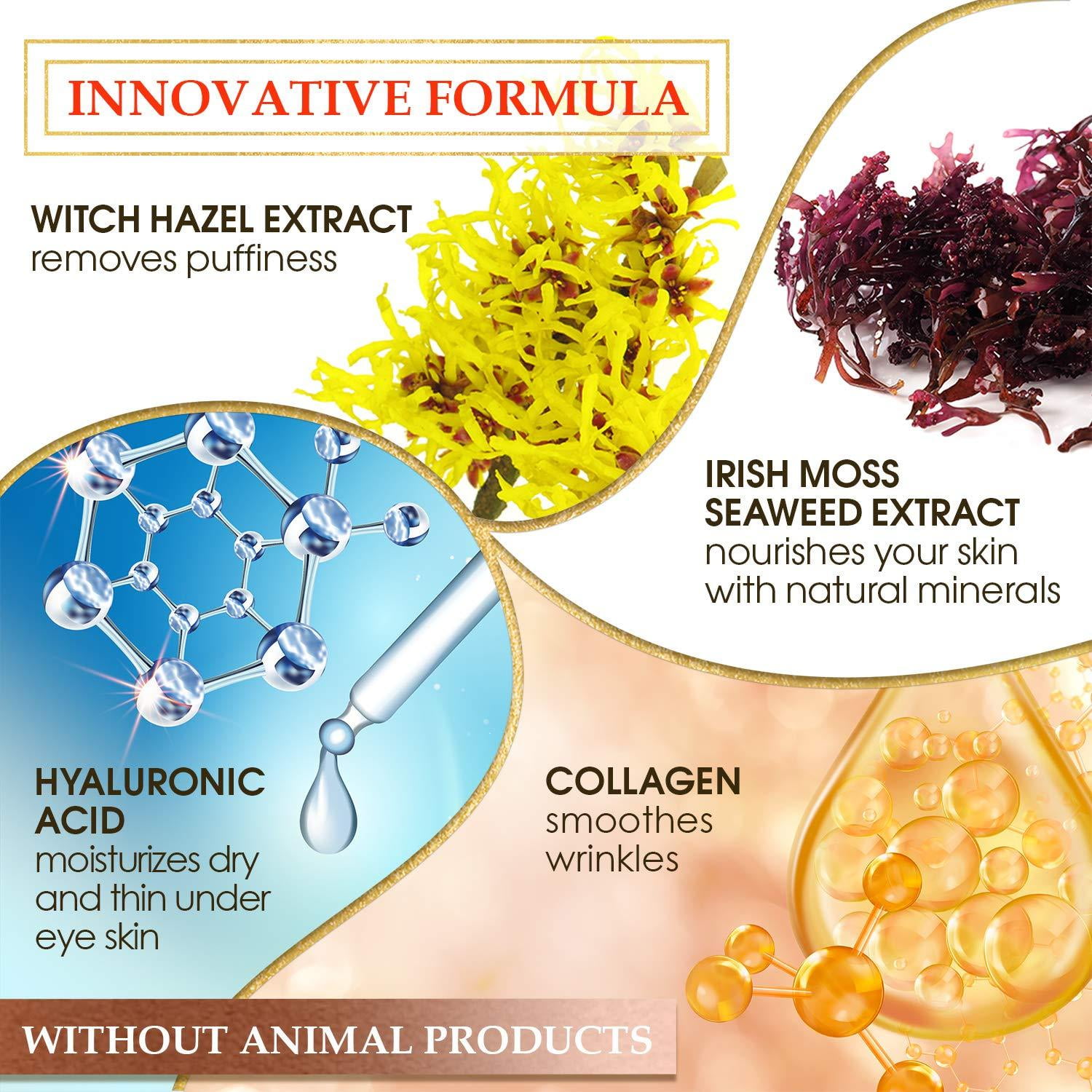 - ULTRA EFFECTIVE – Infused with goodness of witch hazel, Irish moss seaweed, collagen from hydrolyzed wheat protein & hyaluronic acid, the EYE GEL PADS effectively help repair damaged & tired skin