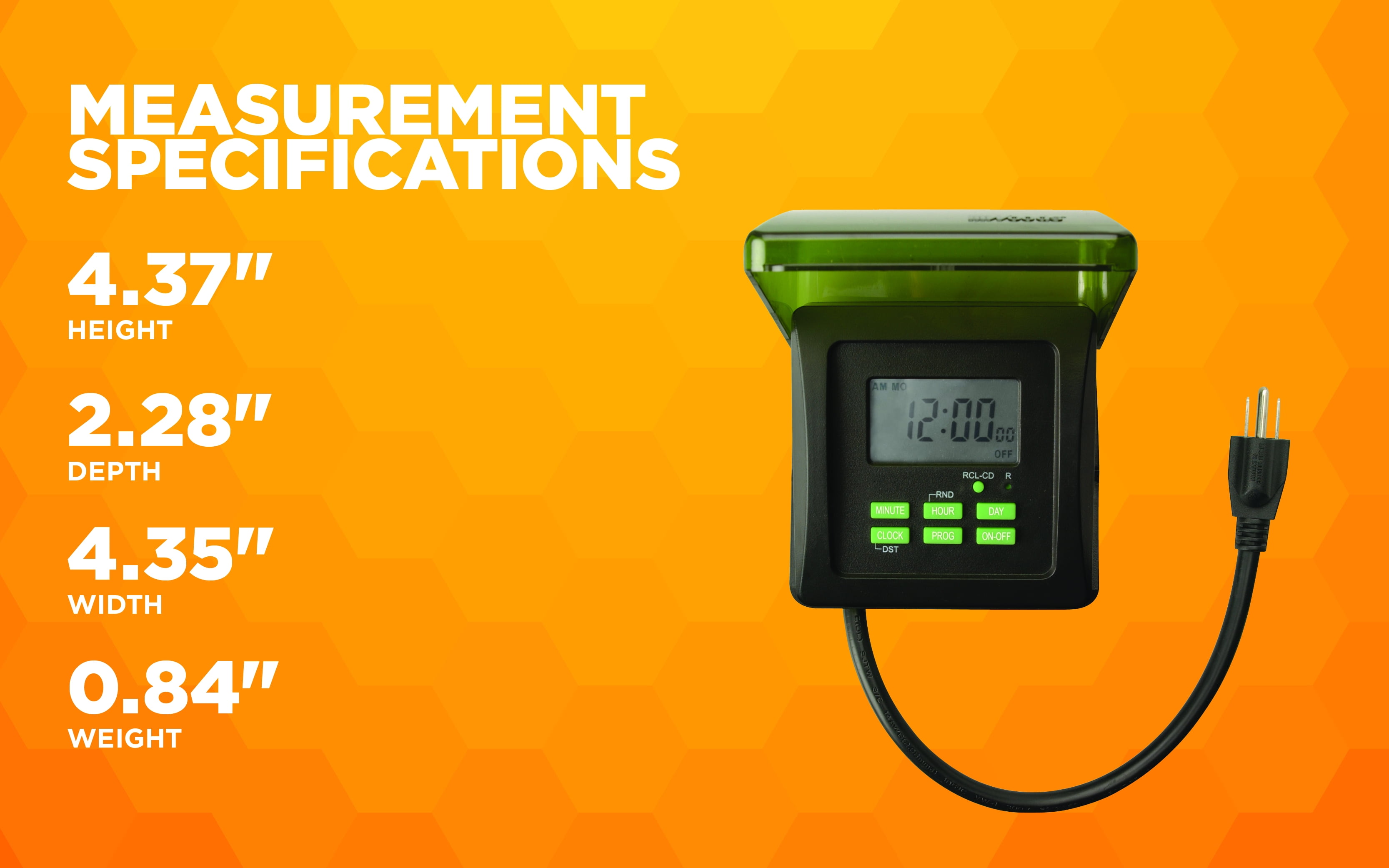 - ENERGY-SAVING PRECISION PROGRAMMING: the 7-day digital outlet timer lets you do up-to-the-minute programming, which means you can be enjoying more energy savings