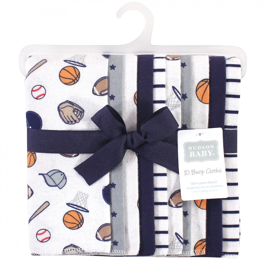 Hudson Baby Infant Boy Cotton Flannel Burp Cloths, Sports, One Size