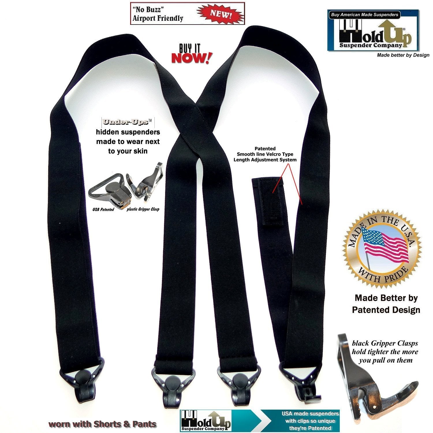 Hold-Ups 1 1/2′ All Black Hidden Undergarment Suspenders with Patented Black Gripper Clasps