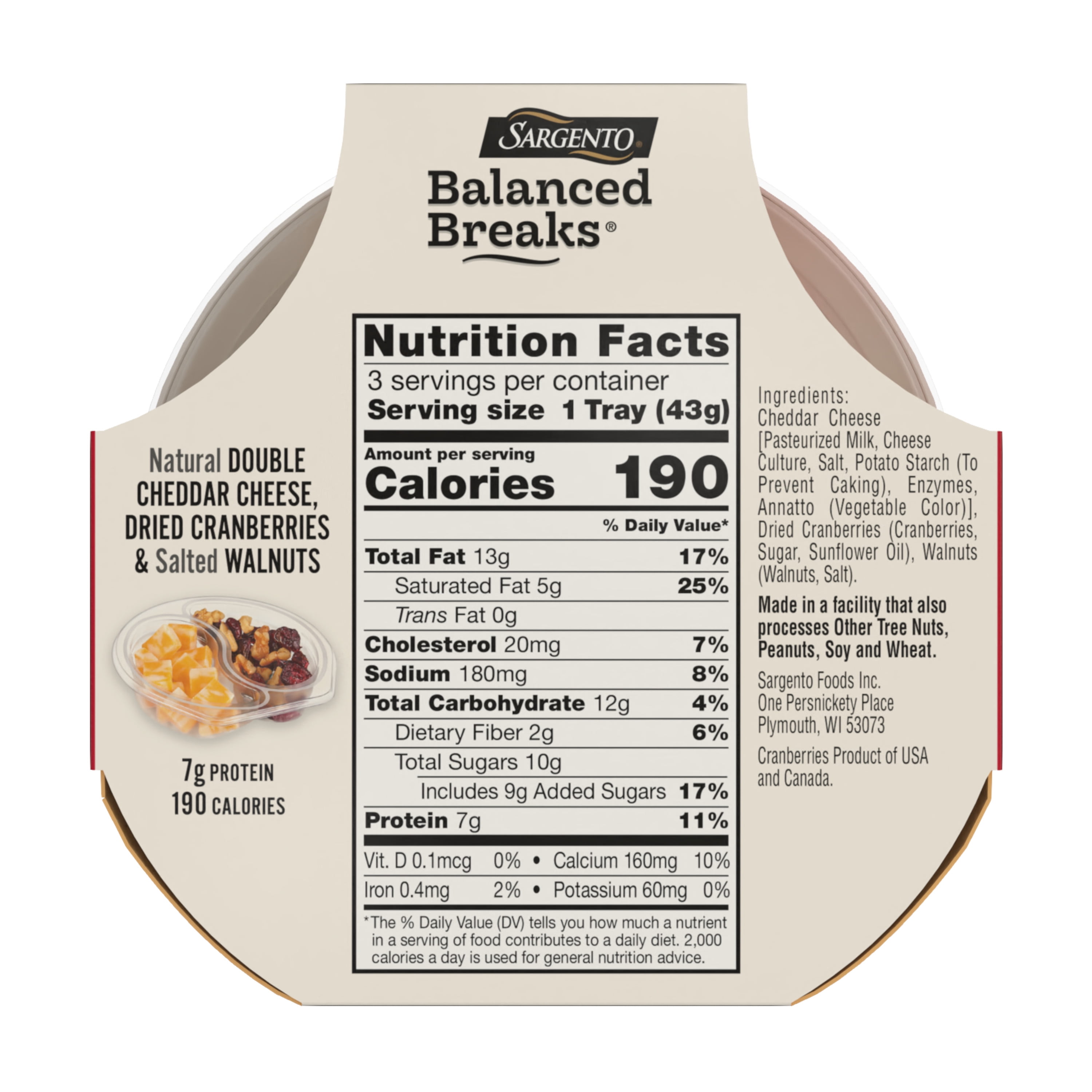 Sargento® Balanced Breaks® Natural Double Cheddar Cheese, Dried Cranberries and Salted Walnuts, 3-Pack