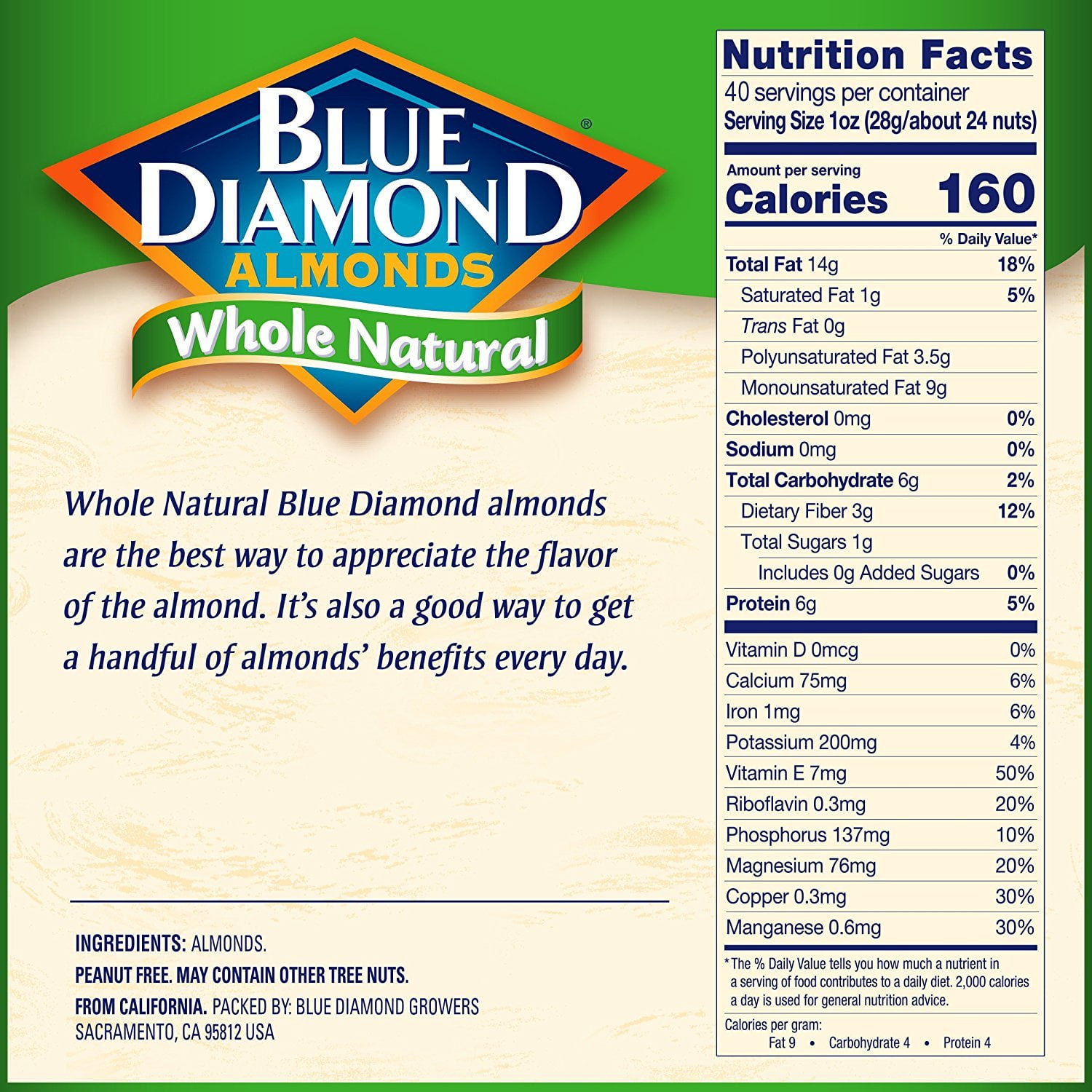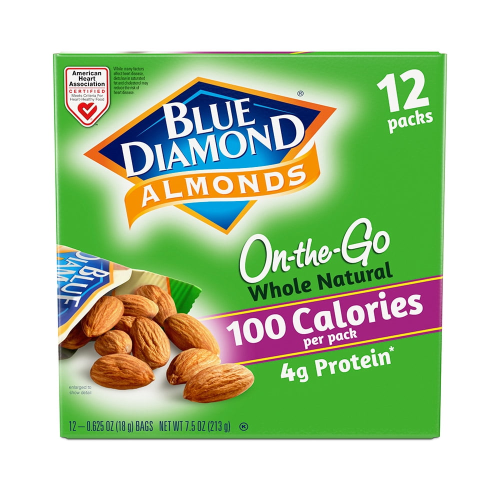 Blue Diamond Almonds On-the Go 100 Calorie Natural Whole Almonds, 0.625 Oz., 12 Count