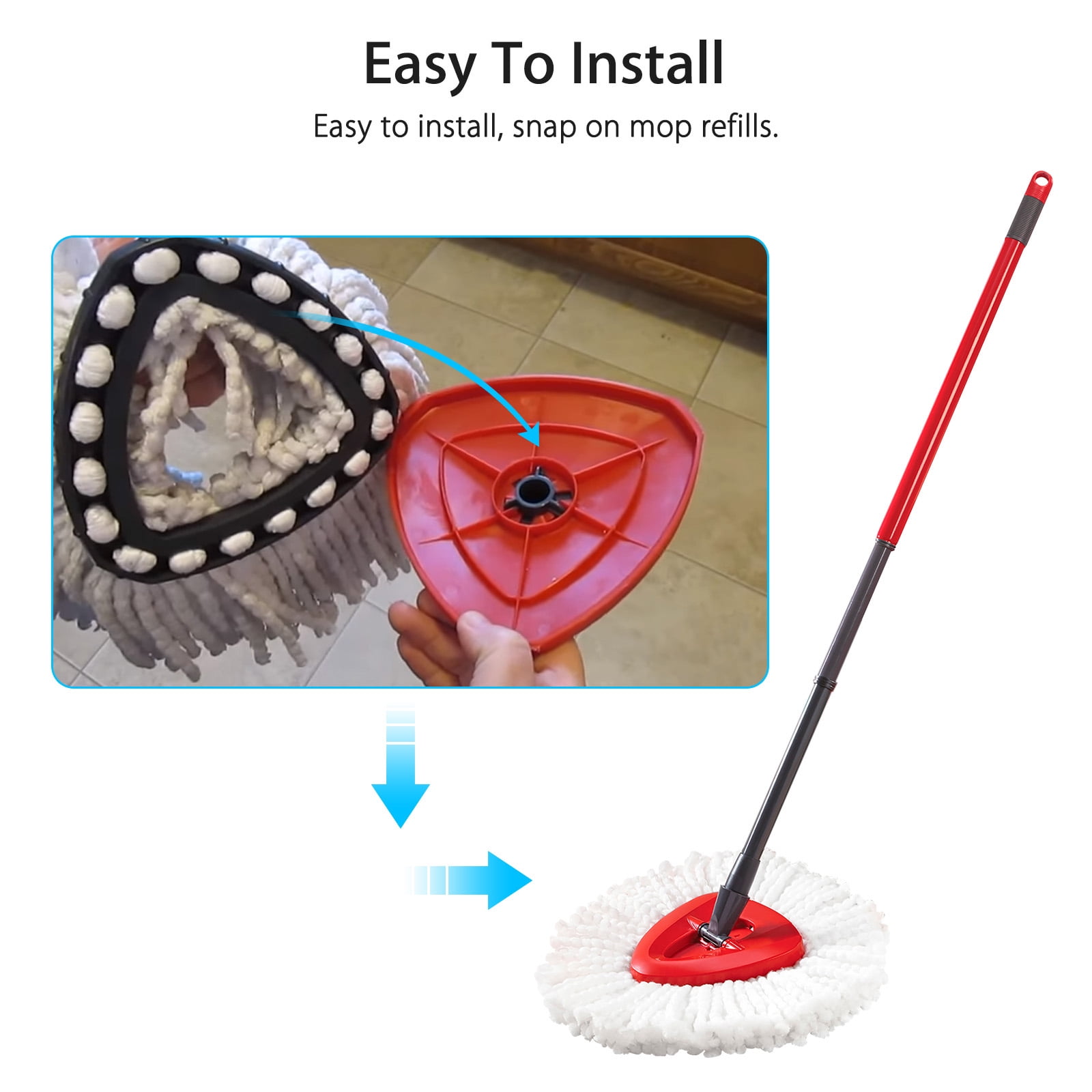 - Easy to install, snap on mop refills, sturdy and durable.