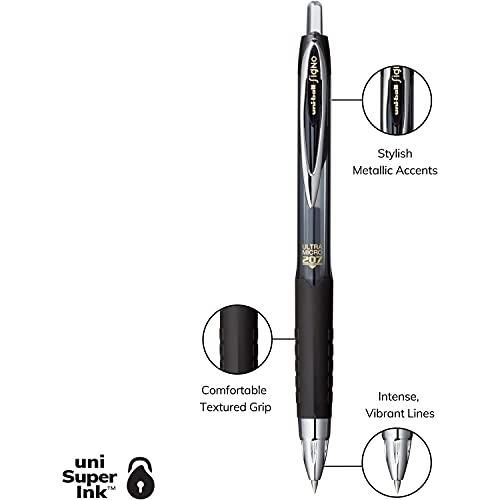 Black Retractable Gel Pens 4 Pack with Micro Points, Uni-Ball 207 Signo Click Pens are Fraud Proof and the Best Office Pens, Nursing Pens, Business Pens, School Pens, and Bible PensNone