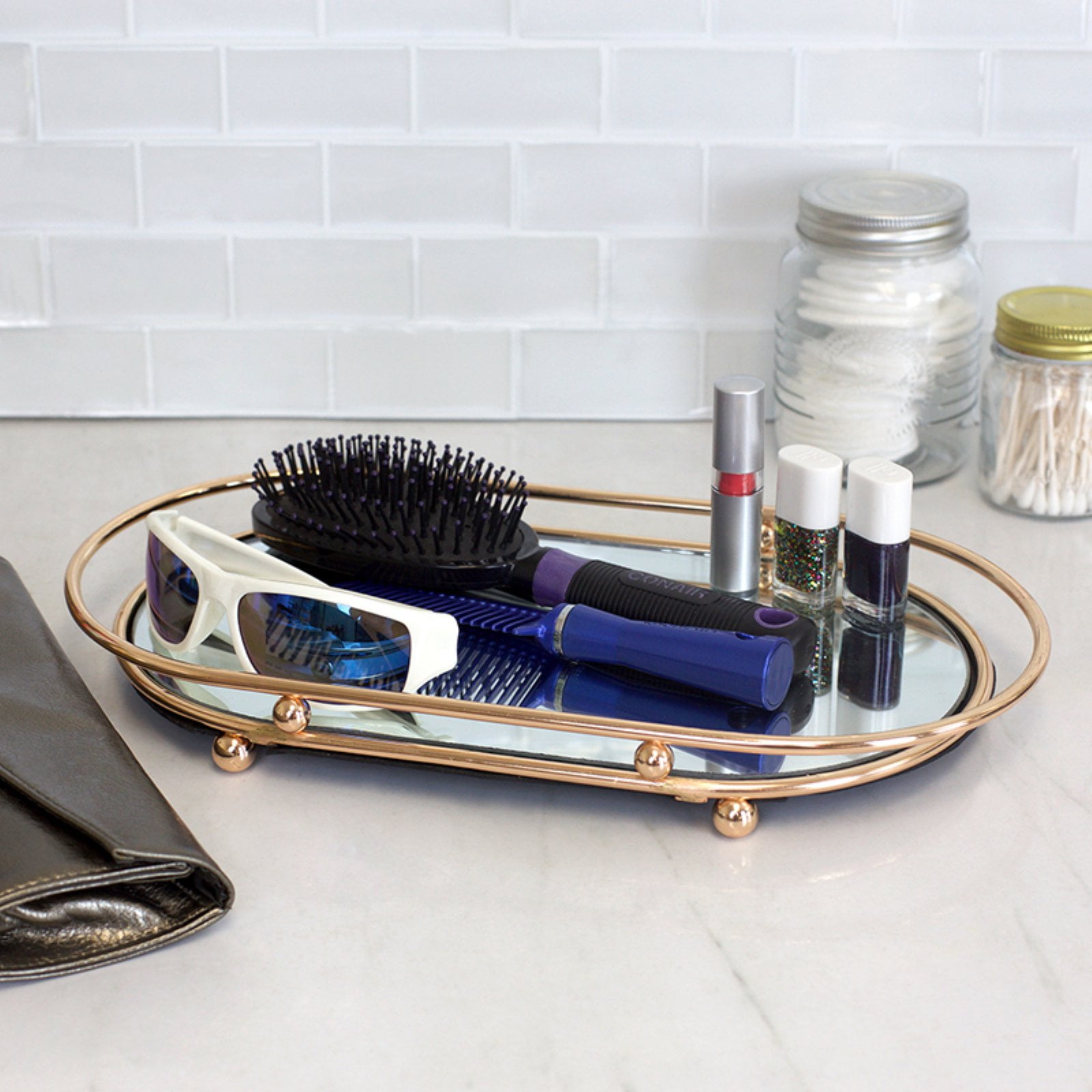 Double-sided 1X/10X magnifying mirror is ideal for applying makeup.
