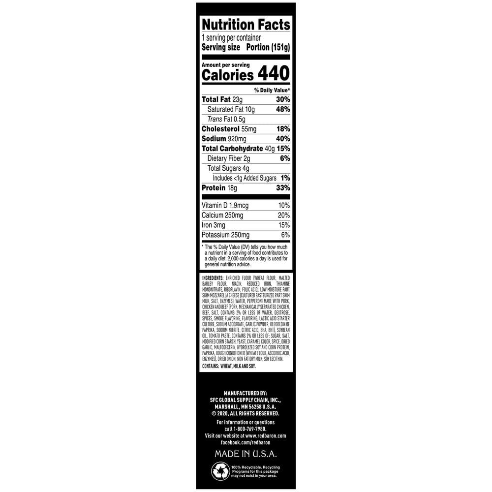 - Find more RED BARON single serve products to love, including Deep Dish Singles Cheese or Pepperoni Pizza, French Bread Singles Five Cheese & Garlic or Pepperoni Pizza, Four Cheese Pizza Melt and many more