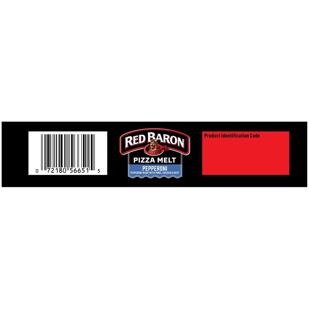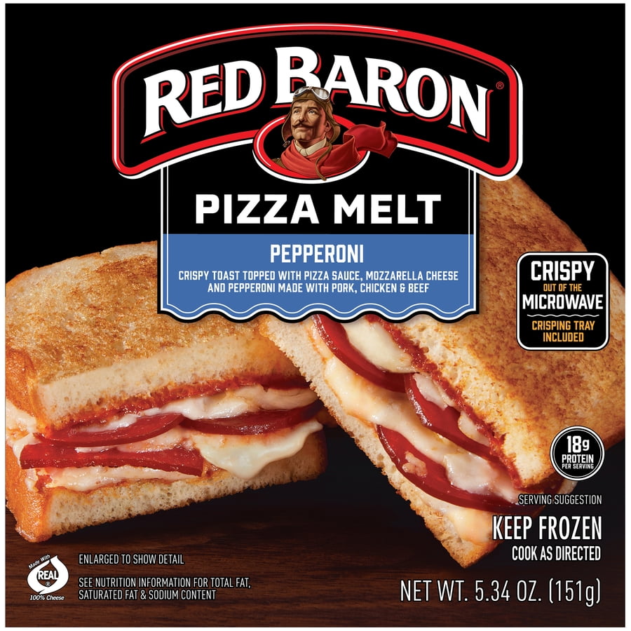- RED BARON Pepperoni Pizza Melt is made with zesty tomato sauce, 100% real cheese, and hearty toppings of pepperoni